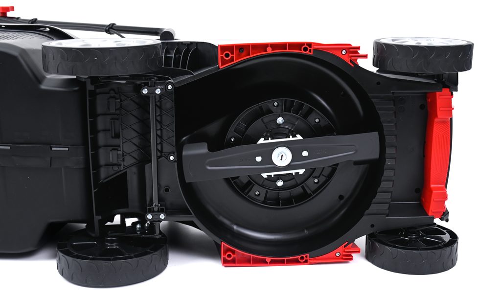 Plastový sběrný box s ukazatelem stavu naplnění pojme až 35 l. Snadnou přepravu zajišťuje praktické madlo a příjemný spínač na řídítkách zvyšuje komfort jízdy.