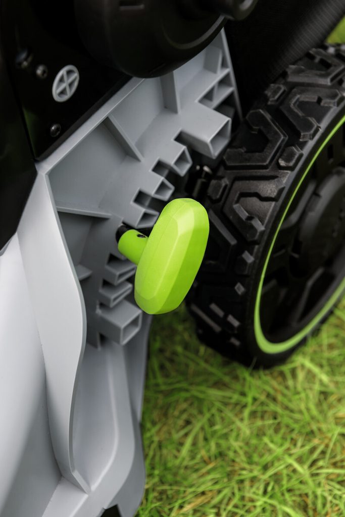 Komfort při práci zvyšuje automaticky variabilní pojezd s plynulou regulací, který drží ideální tempo podle podmínek v trávě. Na rukojeti je interaktivní LED panel s volbou režimů ECO / 1 / 2 – snadno tak přepnete mezi úsporou energie a maximálním výkonem, a to jediným tlačítkem přímo během sečení.