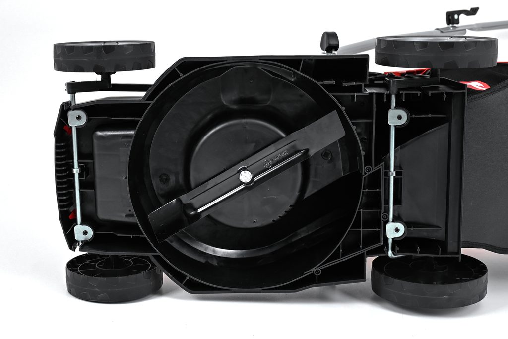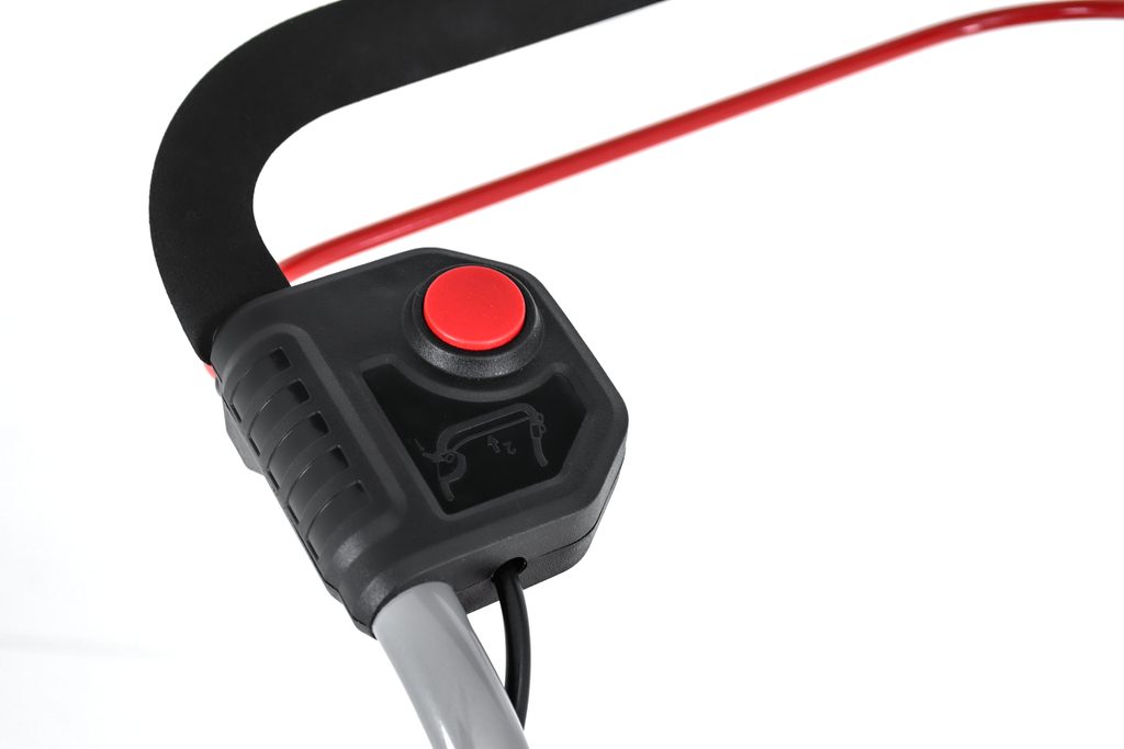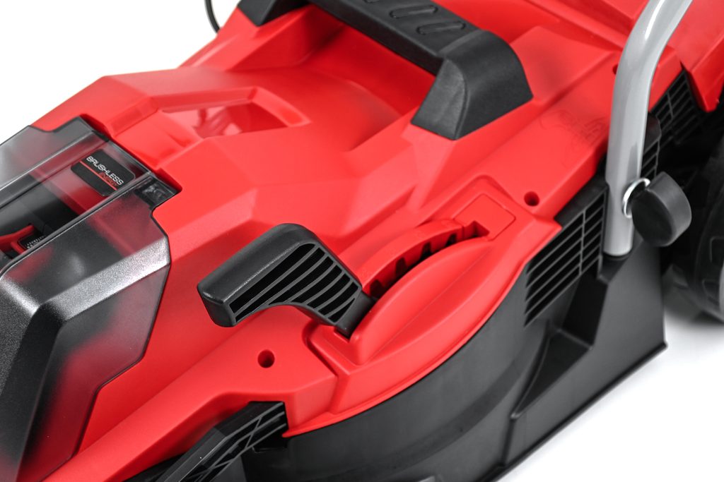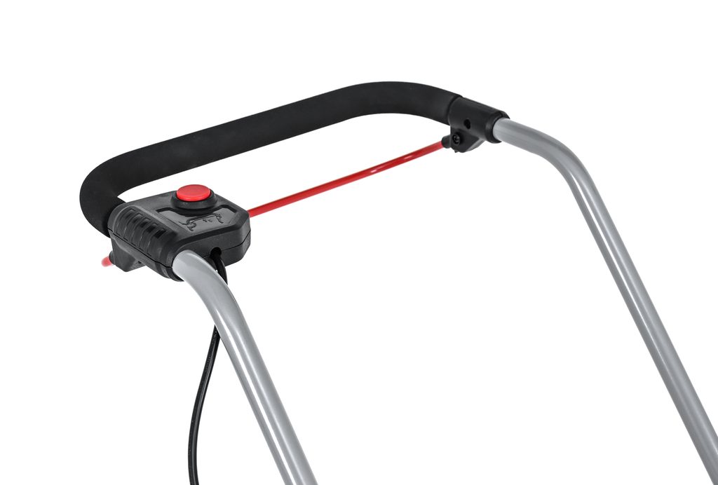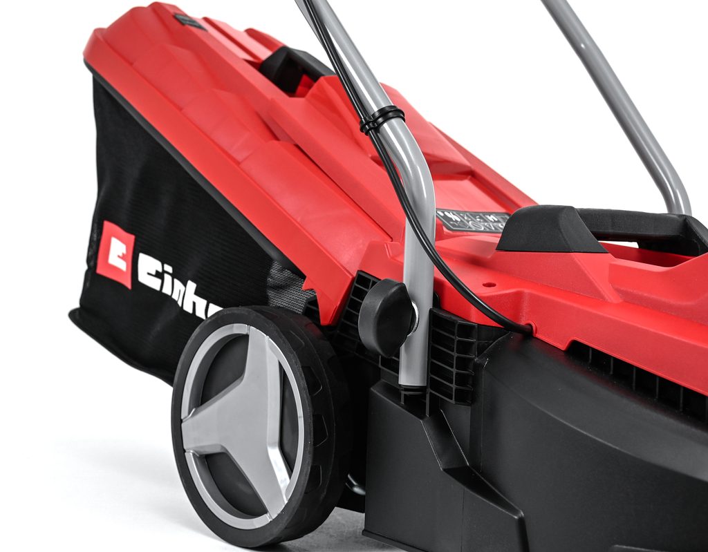Pětistupňové centrální nastavení výšky sečení umožňuje snadno přizpůsobit výsledný vzhled trávníku, výškově nastavitelné madlo se pak postará o pohodlnou ergonomii pro různé uživatele. Sklopná řídítka usnadňují skladování i transport a objemný koš na trávu s praktickým indikátorem stavu naplnění vám včas napoví, kdy je potřeba vysypat.