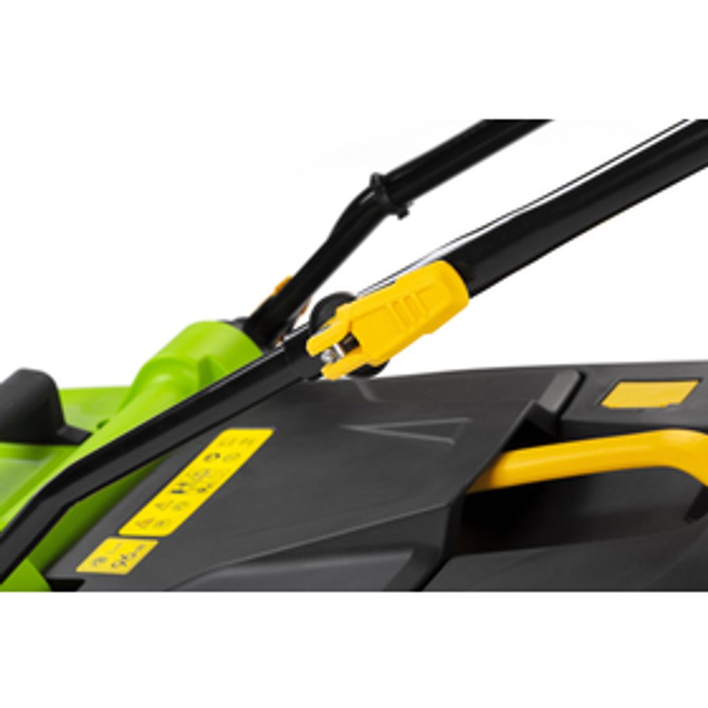 | Funkce | Centrální nastavení výšky , Mulčování , Nastavení výšky rukojeti , Ukazatel plnosti koše |