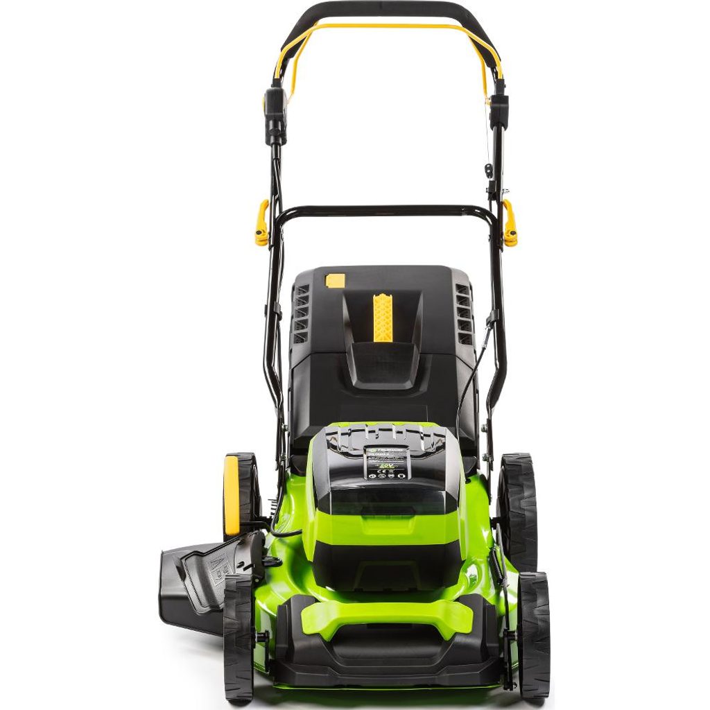 Bezpečnostní pojistka je samozřejmou součástí výbavy a moderní design dodává sekačce elegantní vzhled, který bude ozdobou každé zahrady. Sklopné madlo umožňuje snadnou manipulaci a pohodlné skladování během zimních měsíců. Tato aku sekačka nabízí systém sečení 4v1, který zahrnuje sběr do koše, zadní a boční výhoz a mulčování.