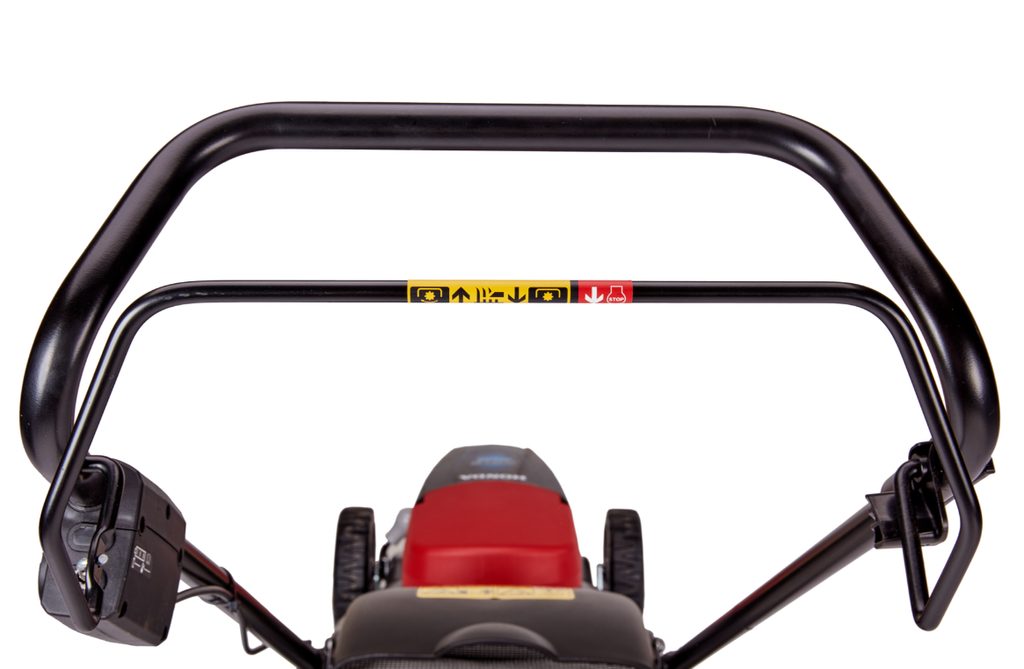 Výšku střihu lze snadno nastavit pomocí rozměrné páky na každé nápravě. Sekačka nabízí dva režimy použití, sekání se sběrem do koše nebo bez sběru. Bezpečnostní prvky, jako je brzda rotace nože, zajišťují okamžité zastavení nože při vypnutí motoru, což zvyšuje bezpečnost při práci.