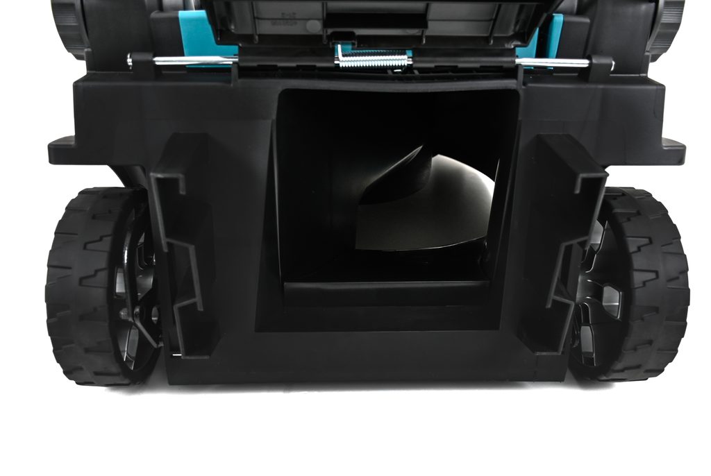 Makita LXT DLM382PT2 je navržena s důrazem na pohodlí i odolnost. Plastové šasi usnadňuje manipulaci, zatímco technologie XPT chrání stroj před prachem i vlhkostí – sekání tak zvládnete i za méně ideálních podmínek. Výšku sekání jednoduše nastavíte centrálně v 13 polohách v rozmezí 20–75 mm, takže si poradíte s různými typy trávníků. Sběrný koš o objemu 40 litrů s indikátorem naplnění vám umožní pracovat déle bez častého vysypávání.