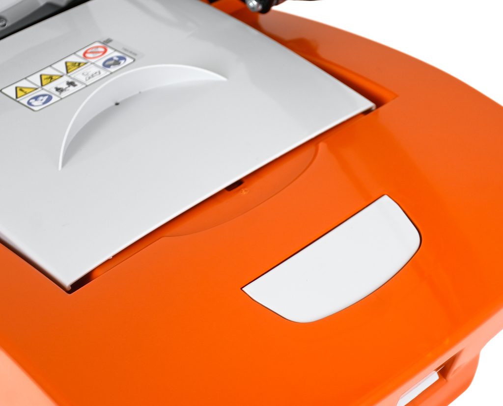 Skládací komfortní rukojeť sekačky je praktická zejména při skladování a přepravě sekačky, což zvyšuje její uživatelskou přívětivost. Tato sekačka přináší ideální kombinaci výkonu, komfortu a snadného používání pro vaši zahradu.