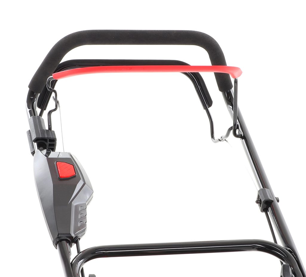 Velká zadní a přední kola jsou uložena v oboustranných kuličkových ložiscích, a centrální nastavení výšky sečení patří mezi standardní vybavení. Nabízí pohodlné madlo s pogumovanou rukojetí a masivní ovládací panel s intuitivními prvky. Kromě toho je sekačka vybavena sklopnou rukojetí pro snadné skladování a přepravu.