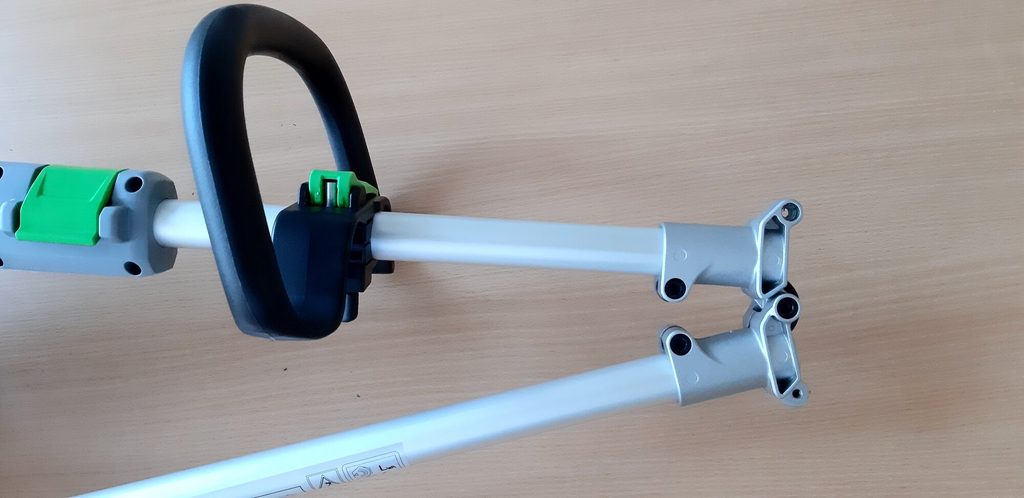 Žací systém využívá nylonovou strunu o průměru 2 mm, která je namotána na cívce poloautomatické strunové hlavy. Struna se v případě potřeby automaticky prodlužuje jednoduchým poklepem strunovou hlavou o zem a její doplnění je velmi snadné, což umožňuje plynulou práci bez zbytečných přerušení. Bezpečnost uživatele je zajištěna díky robustnímu a rozměrnému krytu, který chrání před odlétávající trávou.