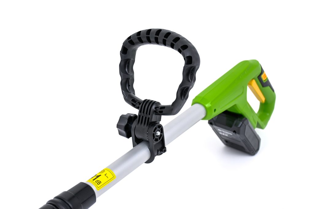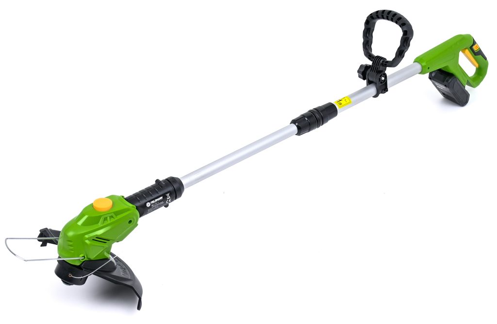 Akumulátorová zahradní strunová sekačka se šířkou sečení 260 mm. Má poloautomatický posun žací hlavy, teleskopickou rukojeť a nastavitelní úhel žací hlavy: 3 horizontální a 4 vertikální pozice. Strunová sekačka má indikátor baterie, doba nabíjení je přibližně 3-5 hod. Výdrž baterie se může lišit v závislosti na zátěži.