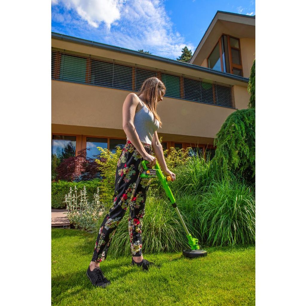 Aku strunová sekačka Fieldmann je skvělým pomocníkem pro úpravy zahrady, kde snadno zvládne posekat trávu podél plotů, kolem stromů i keřů.