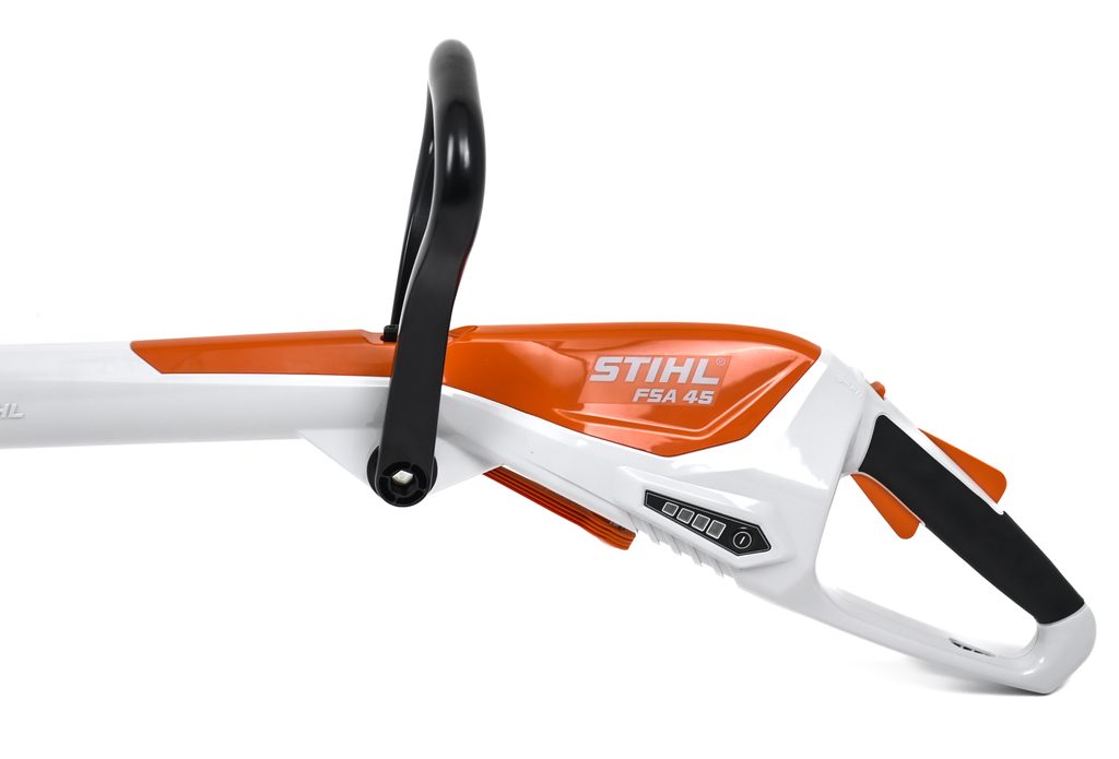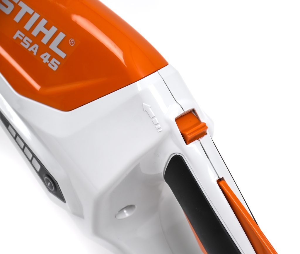 Aku strunová sekačka STIHL FSA 45 tvoří součást řady STIHL Al, je vybavena aktivačním klíčem, který funguje jako bezpečnostní prvek zabraňující nechtěnému spuštění zařízení. Tento klíč je zvláště užitečný při skladování a přepravě, kdy je důležité zabránit náhodnému spuštění zařízení. Nabíjecí kabel umožňuje snadné dobíjení integrovaného 18V Lithium-Iontového akumulátoru z běžné zásuvky, což zajišťuje, že budete mít vždy dostatek energie pro svou práci.