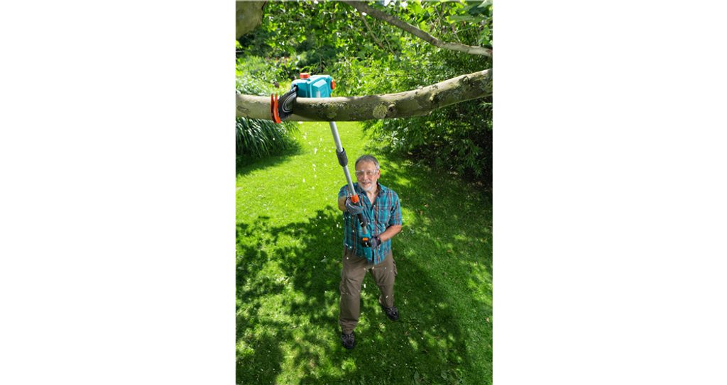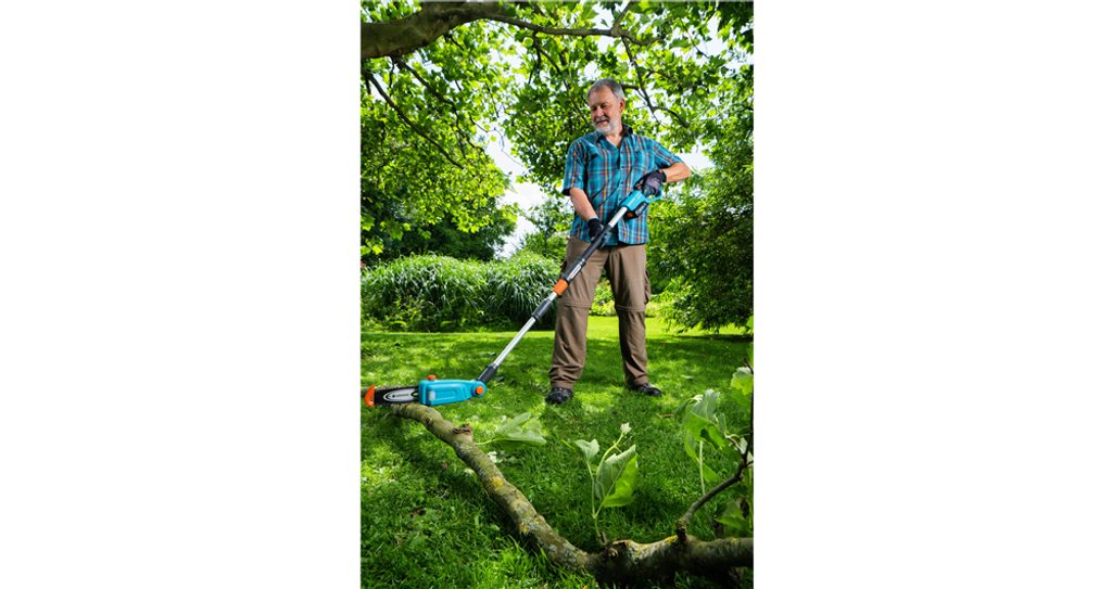 S akumulátorovou teleskopickou vyvětvovací pilkou můžete ořezávat vysoké stromy z bezpečného místa na pevné zemi a odřezávat jednotlivé větve až ve výšce čtyři metry (vč. uživatele). Pevná, lehká, pohodlná a bez obtěžujícího napájecího kabelu.