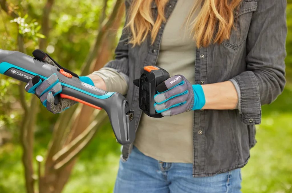 Nůžky Gardena EasyCut jsou navrženy pro pohodlnou manipulaci s perfektním vyvážením a ergonomickou rukojetí, která umožňuje snadné a bezpečné ovládání. Navíc je v rukojeti zabudován LED indikátor, který zobrazuje aktuální stav nabití akumulátoru.