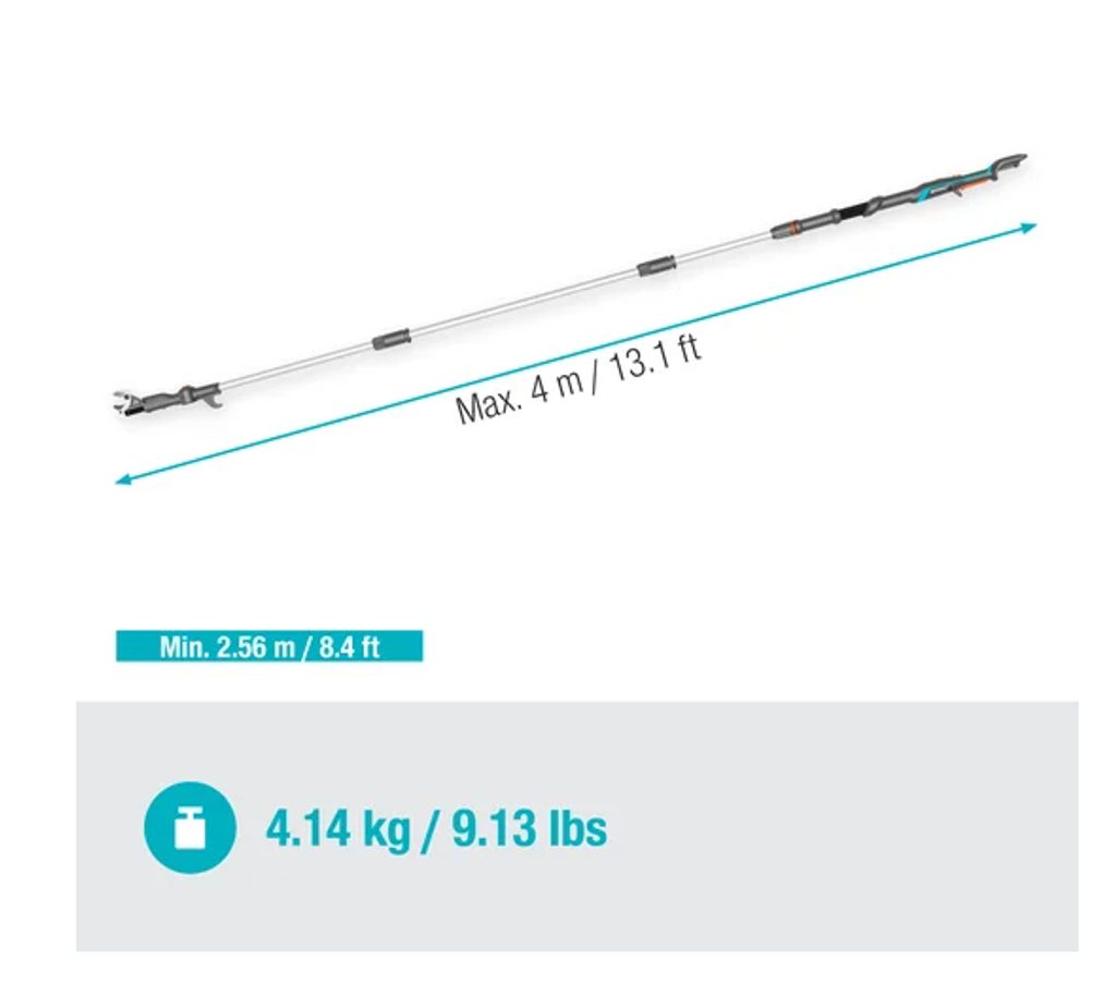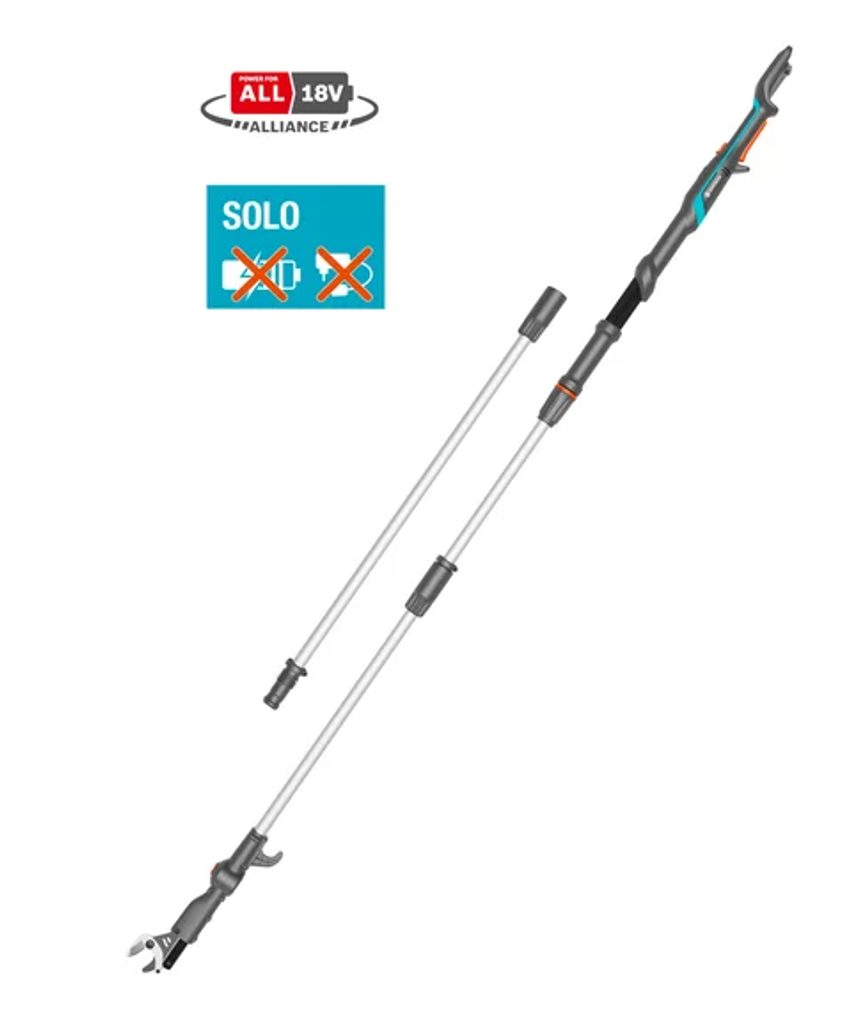 Akumulátorové teleskopické nůžky na větve HighCut 360/18V P4A solo od společnosti GARDENA jsou ideálním řešením pro snadné prořezávání větví ve velkých výškách přímo ze země. Díky teleskopické násadě dosahují délky až 3,6 metru, což umožňuje efektivní práci až ve výšce 5 metrů. Odnímatelná hřídel zajišťuje pohodlnou přepravu i skladování.
