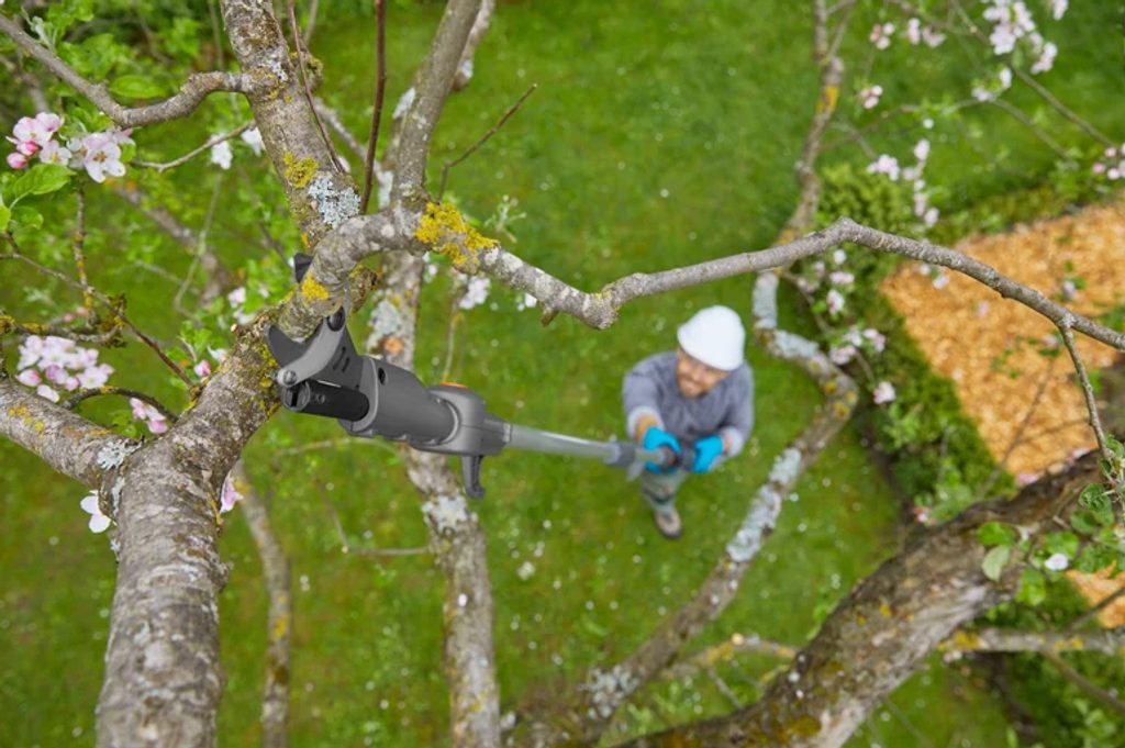 Tenká otočná stříhací hlava umožňuje pohodlné stříhání větví v úhlu až 60 stupňů, zatímco výkyvná hlava poskytuje dobrý výhled na pracovní oblast. Pokud dojde k tomu, že se větve zachytí ve stromě, jednoduše je stáhnete pomocí praktického stahovacího háku umístěného v horní části násady.