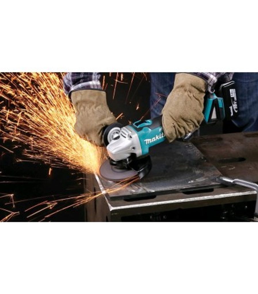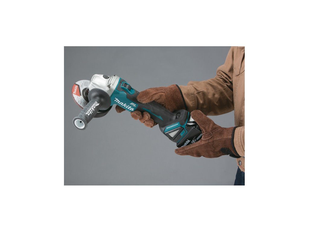 Elektronický omezovač proudu s výstražnou kontrolkou umožňuje práci s regulací zátěže motoru, čímž přispívá k ochraně brusky před přetížením. Bruska je navržena pro snadné uchopení a má malý obvod krytu motoru, což zvyšuje komfort při práci. Aku úhlová bruska Makita je součástí aku programu Makita LXT 18V a je tak kompatibilní s akumulátory této řady.