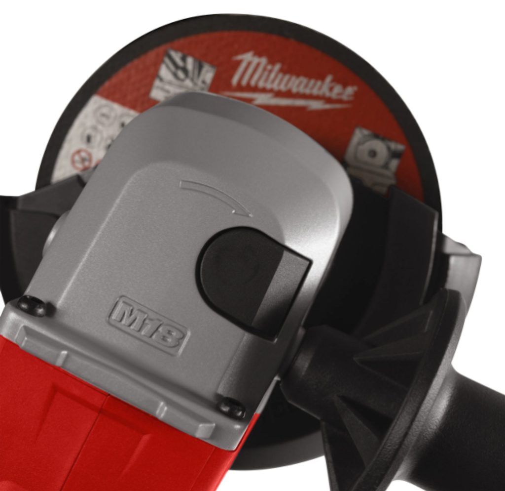 Bezklíčová ochrana 125 mm poskytuje výjimečný řezný výkon a umožňuje rychlé nastavení ochranného krytu bez použití klíče. Funkce line-lock-out navíc zabraňuje automatickému spuštění nástroje.