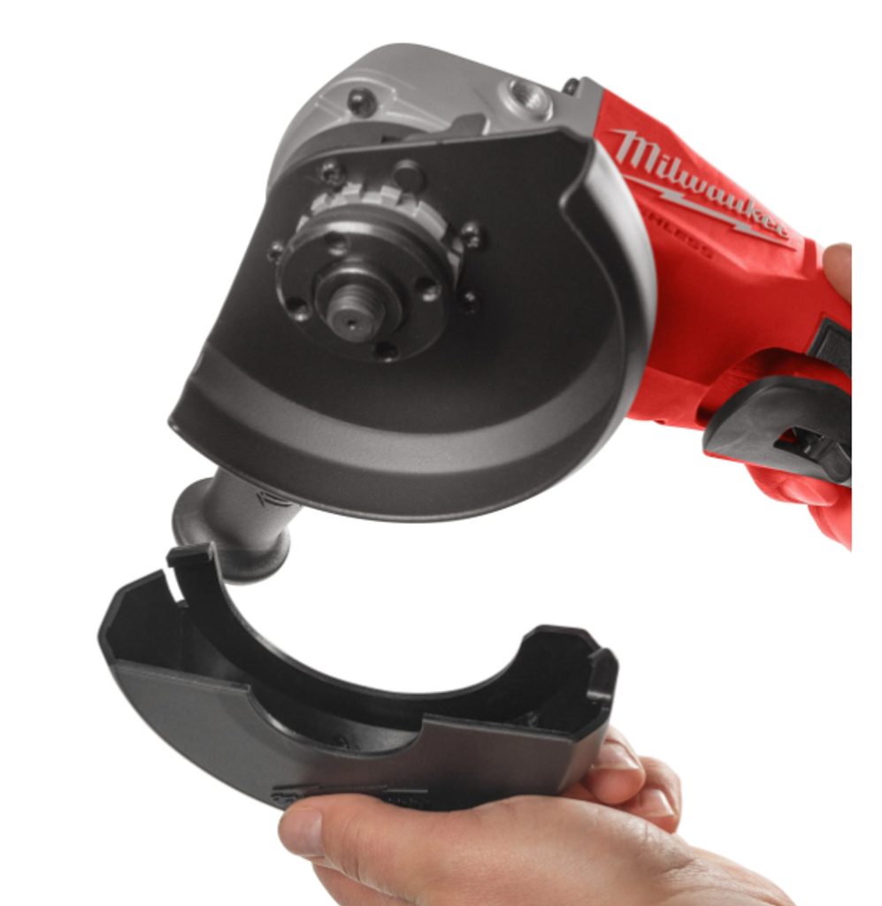 Bezklíčová ochrana 125 mm poskytuje výjimečný řezný výkon a umožňuje rychlé nastavení ochranného krytu bez použití klíče. Funkce line-lock-out navíc zabraňuje automatickému spuštění nástroje.