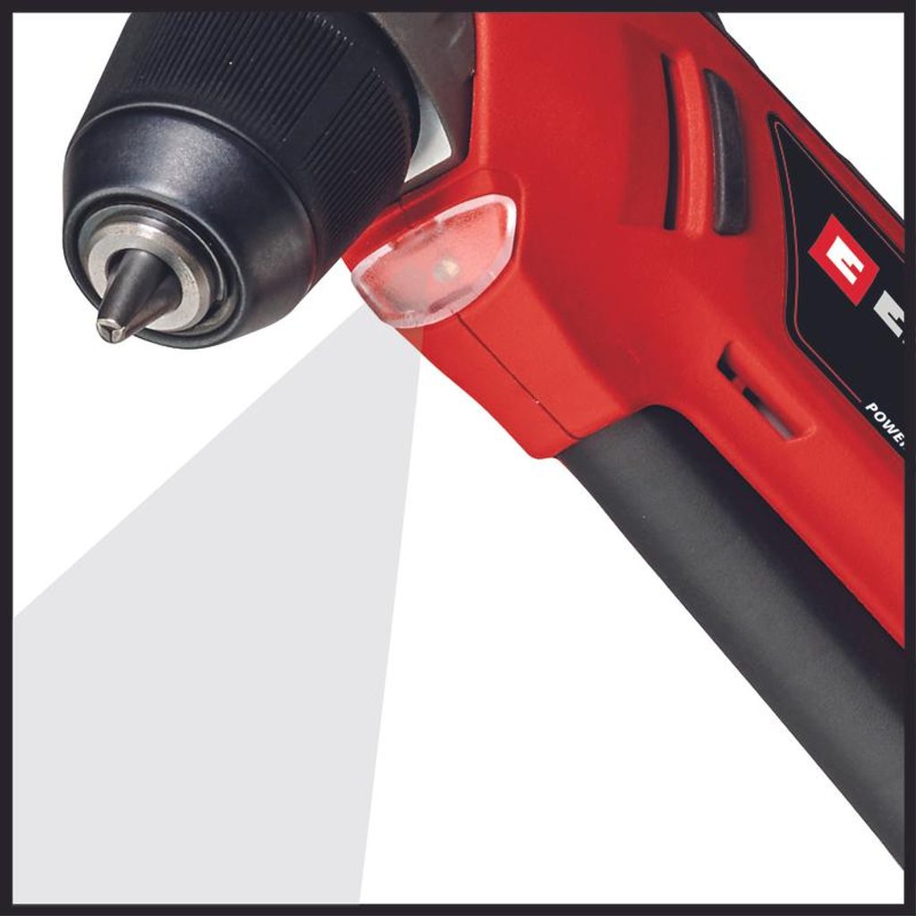 Rychloupínací 10 mm sklíčidlo s automatickým zámkem usnadňuje výměnu vrtáků a bitů bez nářadí a šetří čas při častém střídání úkonů. Integrované LED světlo osvítí pracovní plochu i v tmavých koutech a pravý/levý chod umožňuje jak utahování, tak povolování šroubů.