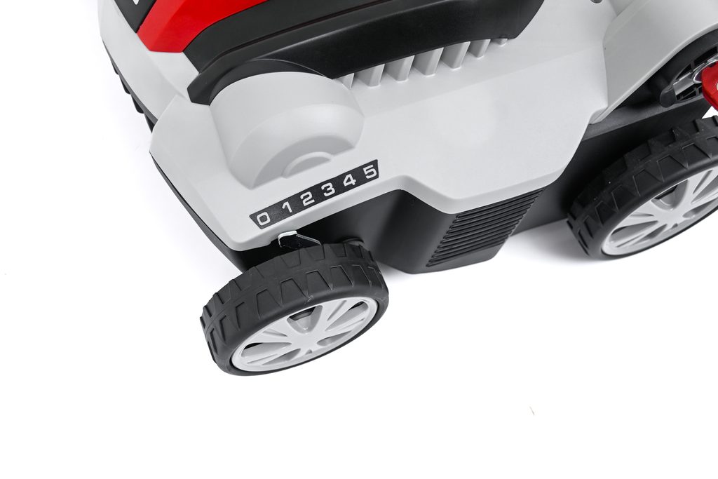 Hloubku záběru jednoduše nastavíte v pěti stupních podle stavu vašeho trávníku, takže stroj vždycky odvede poctivou práci přesně podle vašich potřeb.