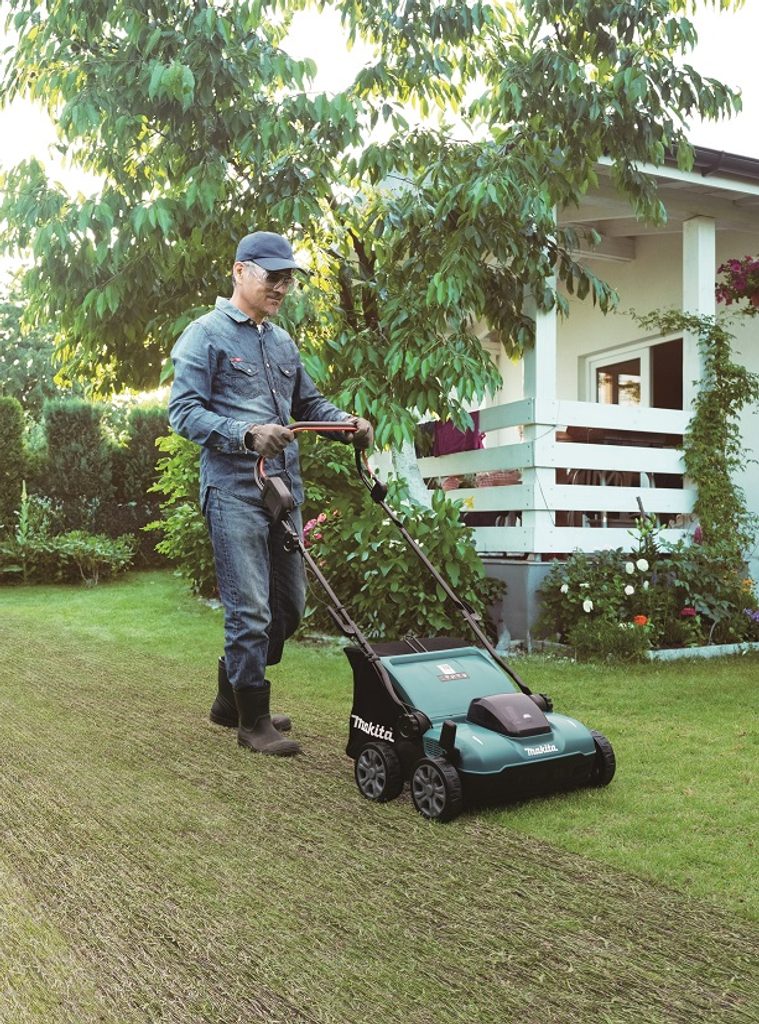 Posekaný materiál a mech se sbírá do 30 l koše, přehled o stavu energie máte díky indikátoru vybití akumulátoru. Pro snadné skladování potěší pohodlné beznástrojové složení stroje a také jednoduchá výměna válce, díky které rychle přepnete mezi režimy péče o trávník.