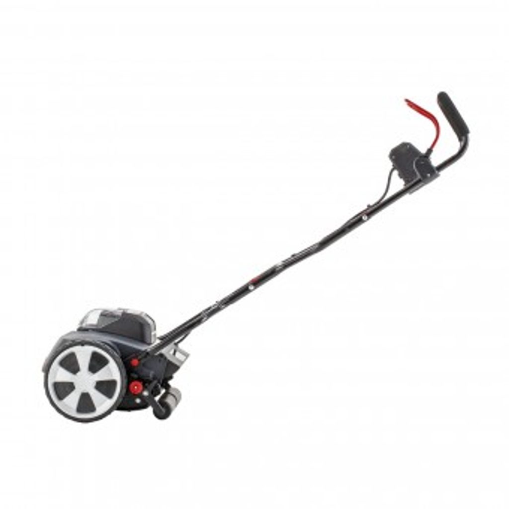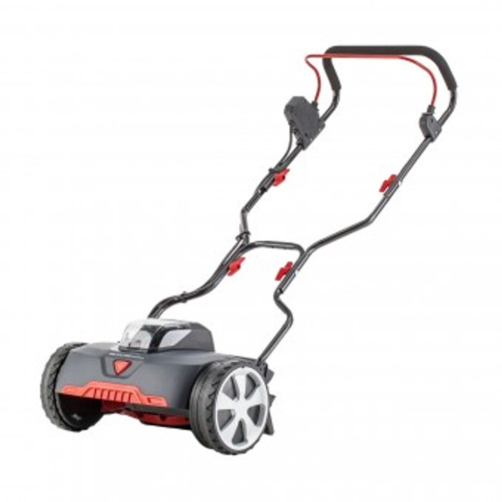 Klíčovou vlastností je žací vřeteno s pěti ocelovými noži, které pracují v harmonii s plochým nožem pro přesný a čistý střih. Výšku sečení lze snadno nastavit ve čtyřech krocích od 14 do 38 mm, což umožňuje přizpůsobit se různým podmínkám trávníku. Velká kola o průměru 200 mm zajišťují vynikající trakci, zatímco šířka sečení 38 cm urychluje práci.