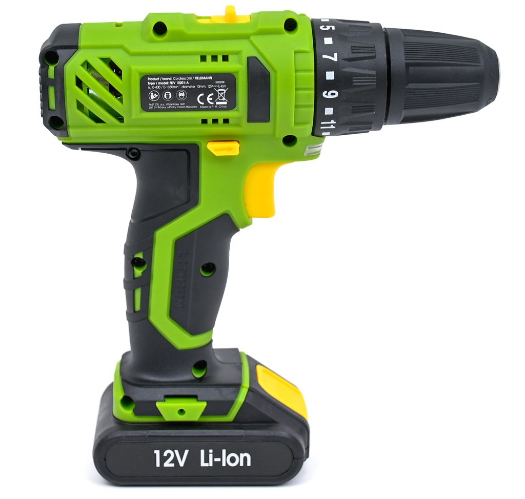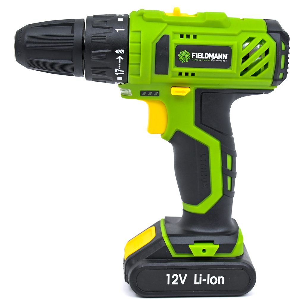 Při práci s akumulátorovou vrtačkou Fieldmann pohodlně dosáhnete kamkoliv, nejste nijak omezeni délkou přívodního kabelu, protože chod zajišťuje Li-Ion baterie 12 V. Vrtačka je i s baterií velmi lehká a vyvážená, navíc je vybavena pohodlnou ergonomickou rukojetí.