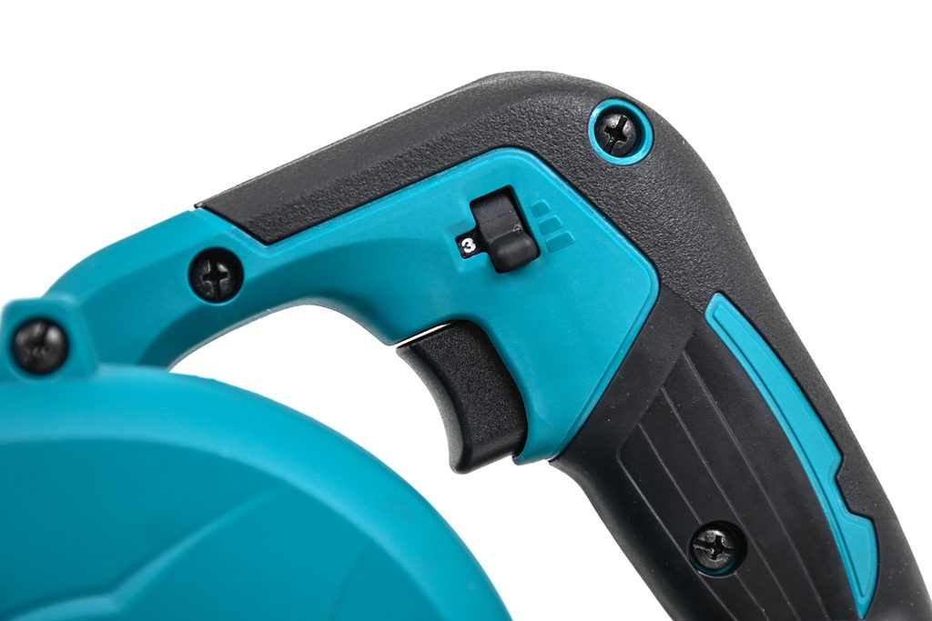 S třemi stupni nastavení objemu vzduchu si můžete přizpůsobit výkon podle potřeby, a to vše díky elektronickému vypínači, který umožňuje regulaci chodu. Ergonomicky tvarovaná pogumovaná rukojeť zajišťuje komfortní a pevný úchop, což znamená méně únavy při práci.