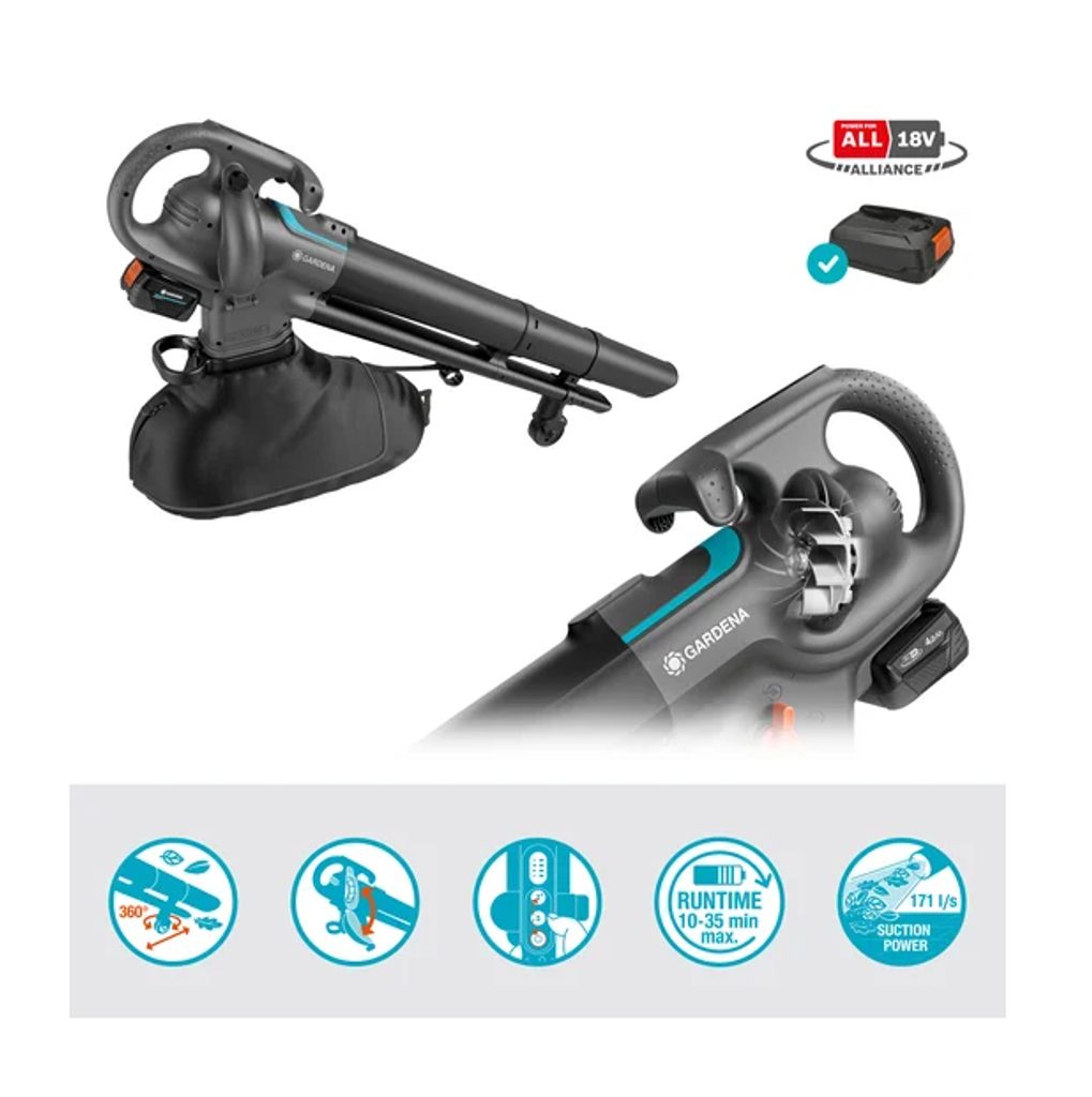 Aku vysavač a fukar na listí Gardena PowerJet 18V P4A - set 14895-20 je ideálním pomocníkem pro snadné a efektivní odstraňování listí a nečistot z vaší zahrady. Tento bezdrátový multifunkční přístroj je ergonomicky navržený, snadno ovladatelný a napájený 18V akumulátorem P4A. Nabízí vysoký čisticí výkon a maximální pohodlí při práci.