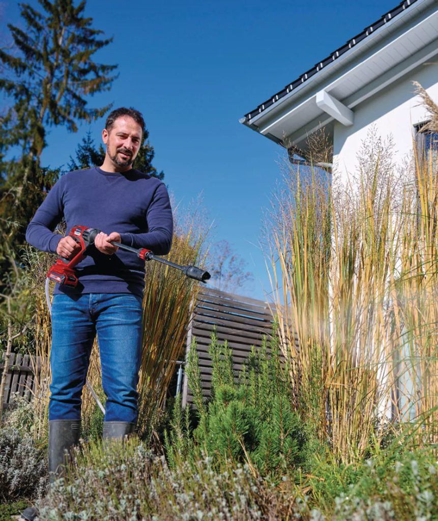 Aku vysokotlaká myčka Einhell HYPRESSO 18/24-1 pro čištění a zalévání na zahradě nebo terase, která nabízí maximální flexibilitu díky provozu bez kabelů. Tato aku tlaková pistole je součástí aku programu Einhell Power X-Change, což umožňuje snadnou kombinaci baterií a systémových zařízení z této série.