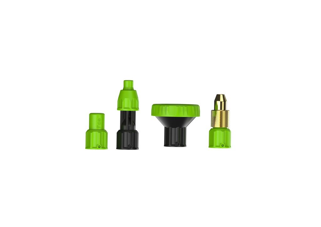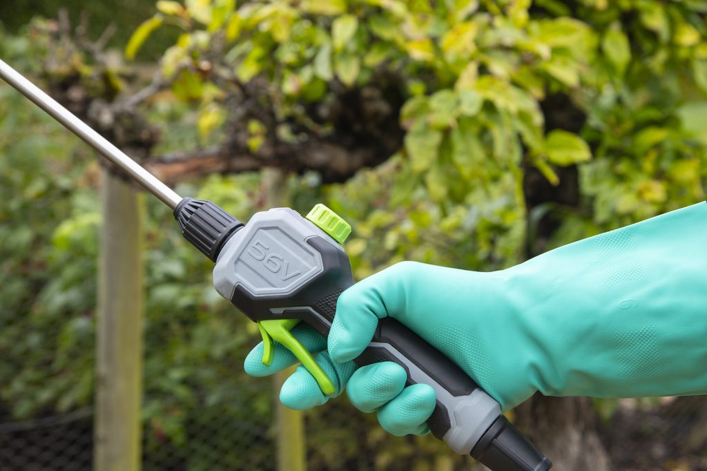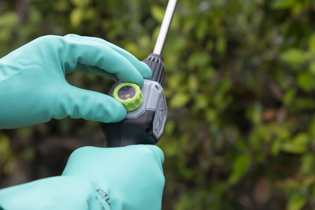 Postřikovač je vybaven bezuhlíkovým vícepólovým elektromotorem, který pohání třípístové čerpadlo s vysokou účinností a stabilním tlakem. Díky plynule nastavitelné regulaci průtoku na ergonomické rukojeti lze snadno přizpůsobit množství aplikované látky konkrétním potřebám. Součástí balení je sada čtyř trysek – nastavitelná rozprašovací, plochá tlaková, zpěňovací a sprchovací, které umožňují různé způsoby postřiku podle typu kapaliny.