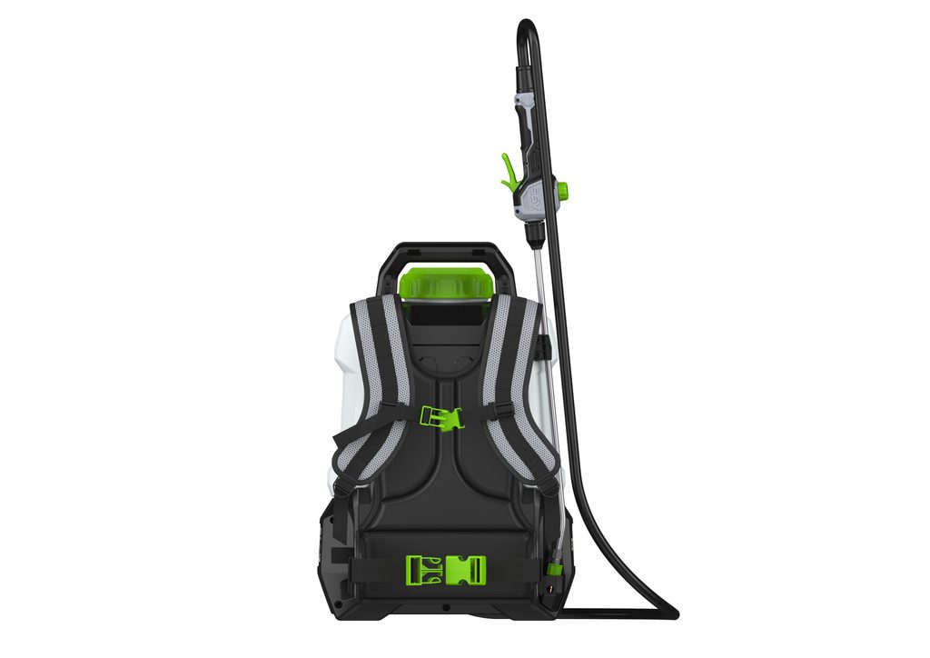 Objemná nádrž o kapacitě 15 litrů s vodoznakem zaručuje dlouhou pracovní dobu bez nutnosti doplňování. Nádrž i baterie jsou důmyslně rozmístěny na komfortním zádovém postroji, který zajišťuje dokonalé vyvážení a minimalizuje zátěž zad. Filtrační systém účinně zabraňuje průniku nečistot do čerpadla, zatímco tlaková hadice s nerezovou trubicí odolává běžným chemickým látkám.