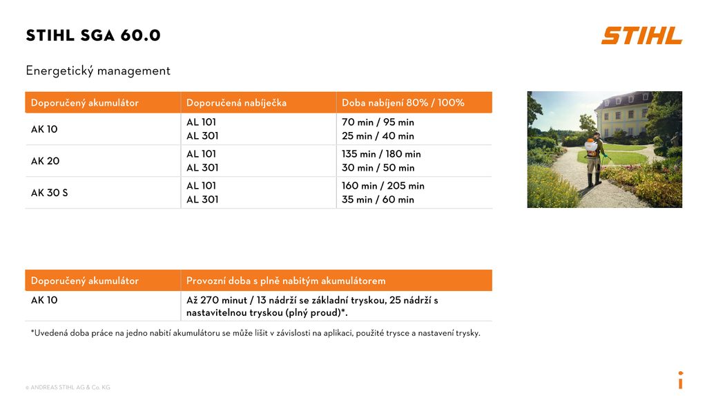 Aku zádový postřikovač STIHL SGA 60 SET (AK 10 + AL 101)