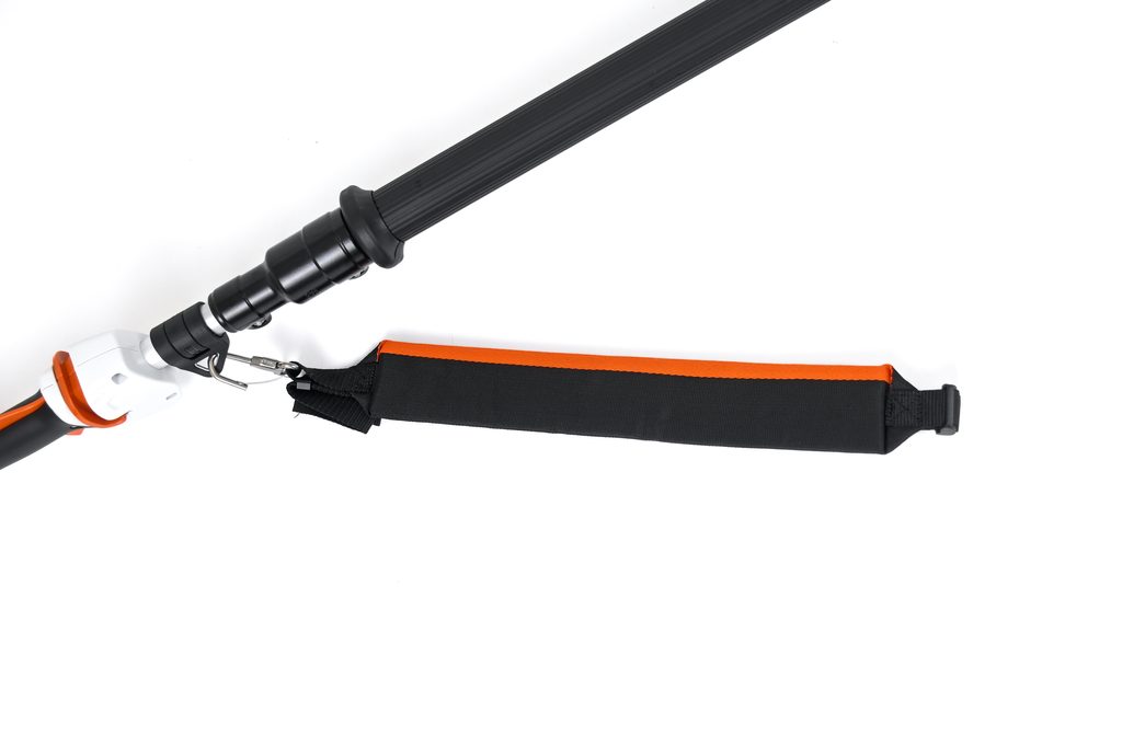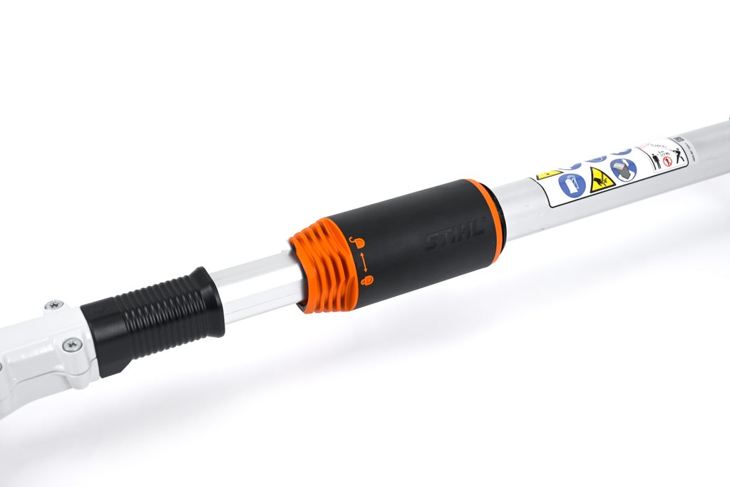 Při přepravě lze nůžky složit na délku 180 cm. Praktická teleskopická tyč umožňuje jednoduché prodloužení v rozmezí 260 – 330 cm, což je ideální pro práci s vysokými nebo širokými živými ploty. Délku lze snadno nastavit bez použití nářadí.