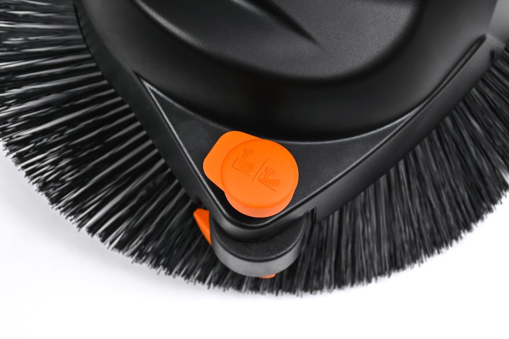 Tento zametač je vybaven centrálním nastavením výšky v osmi úrovních, což umožňuje přizpůsobit jej různým typům povrchů. Nylonové štětiny jsou velmi odolné a mají dlouhou životnost, i při intenzivním používání v náročných podmínkách. Díky bočním přesahujícím štětinám a vymezovacímu válečku je možné snadno uklidit i u zdí a obrubníků.