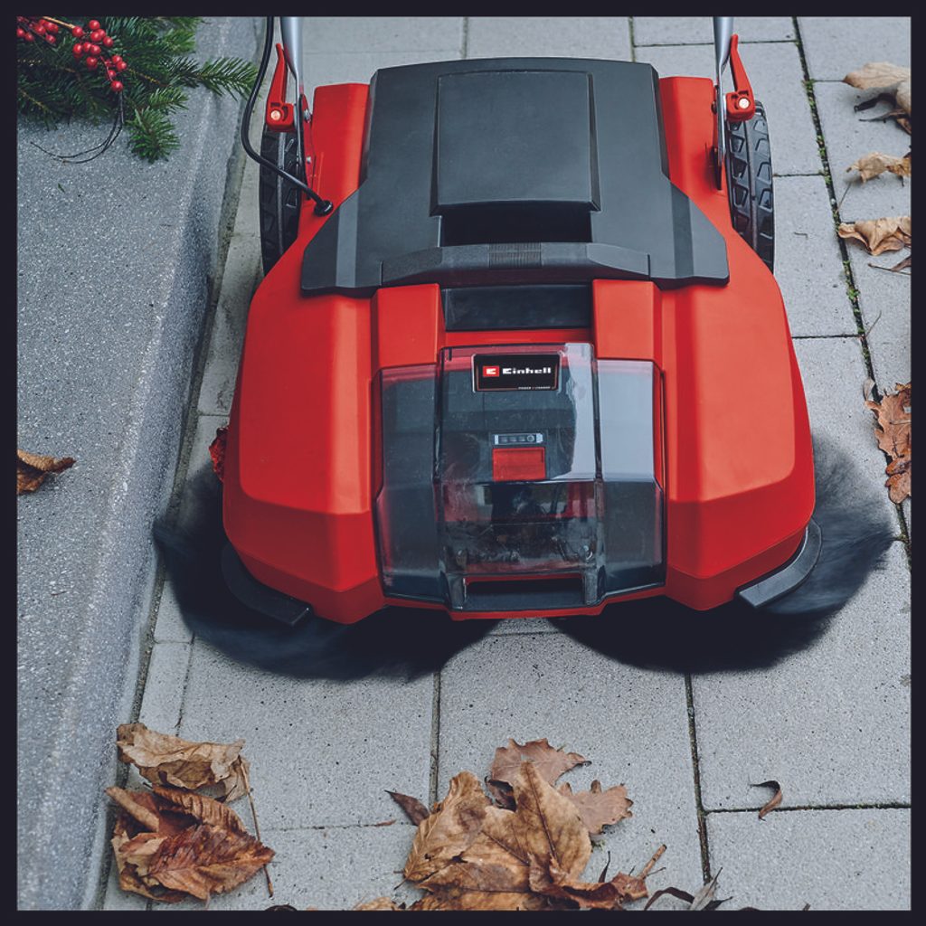 Vypínač je snadno dosažitelný, protože je na samotné rukojeti. Řiditelná kolečka zajišťují snadnou manipulaci bez ohledu na povrch. Akumulátorový zametač se snadno přepravuje díky svému ergonomickému tvaru a velkým kolečkům. Akumulátorový zametač má nastavitelná řídítka pro snadné skladování. Součástí je vysoce kvalitní 20 litrová nádrž na nečistoty, kterou lze bezpečně odložit.