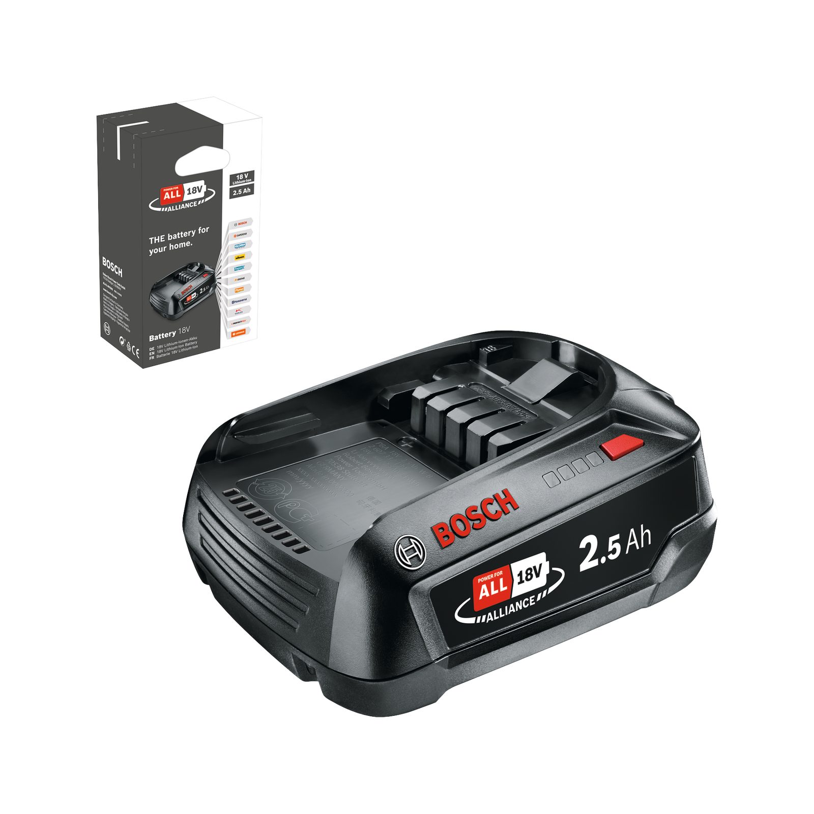 Akumulátor Bosch PBA 18V představuje vysoce výkonný zdroj energie, který je navržen pro použití s širokým spektrem nářadí Bosch Home & Garden z aku programu Bosch 18 V POWER FOR ALL. Akumulátor je i součástí programu 18 V POWER FOR ALL ALLIANCE. Kompatibilní je napříč celé řady produktů pro dílnu i zahradu, nejen od firmy Bosch, ale i dalších výrobců v této alianci.