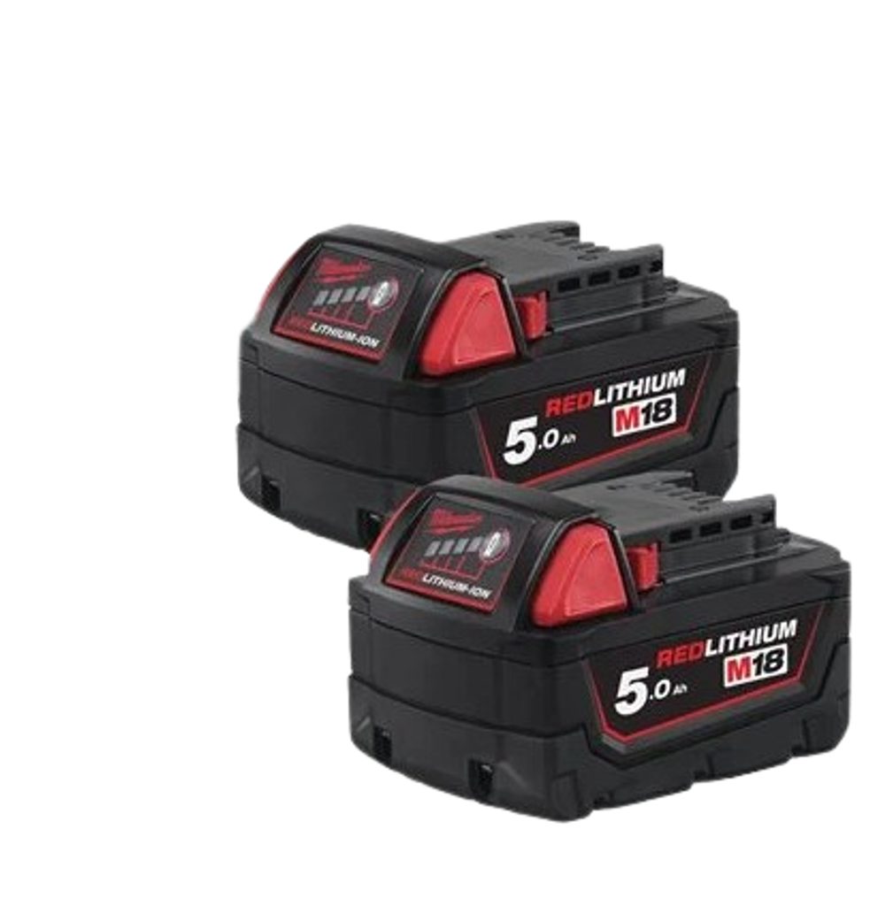 Akumulátor Milwaukee M18 B52 5,0 Ah 2 ks zajistí až 2,5x delší dobu provozu, až o 20% větší výkon a až 2x delší životnost akumulátoru oproti jiným lithium-iontovým technologiím nebo oproti předchozí akumulátorové technologii Milwaukee®. (Výsledky závisejí na nářadí a použití).