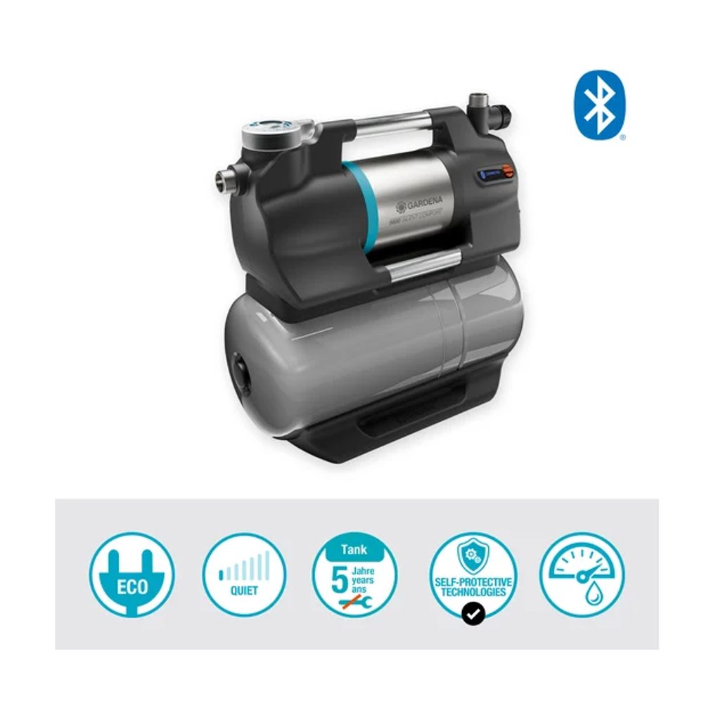 Automatická domácí vodárna GARDENA 5600 SilentComfort je ideálním řešením pro efektivní automatizované zásobování vaší domácnosti i zahrady vodou. Tato vodárna se vyznačuje mimořádně tichým provozem a moderním ovládáním zavlažování přes Bluetooth, přičemž nabízí vysoký výkon a skvělou úspornost.