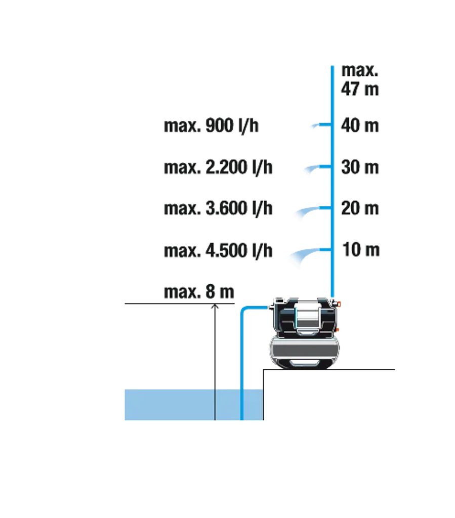 | Maximální sací výška | 8 m |