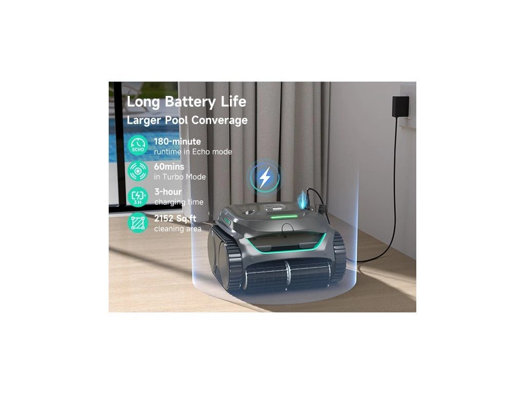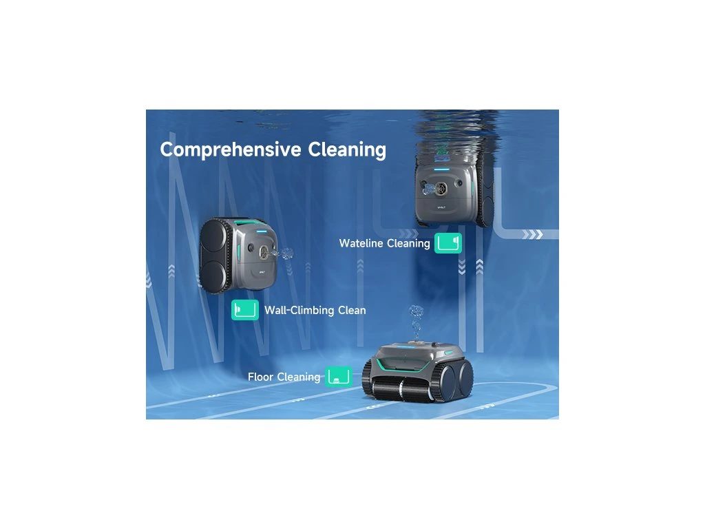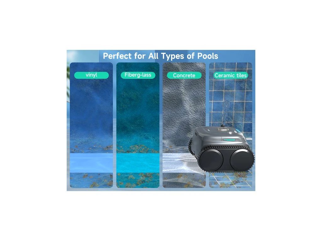 Ovládání přes mobilní aplikaci usnadňuje volbu režimu a kontrolu průběhu čištění. Vysavač je vhodný pro bazény do cca 150 m² a je navržen tak, aby zvládal i nerovnosti, stěny nebo schody bez častého zasekávání.