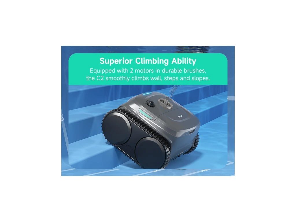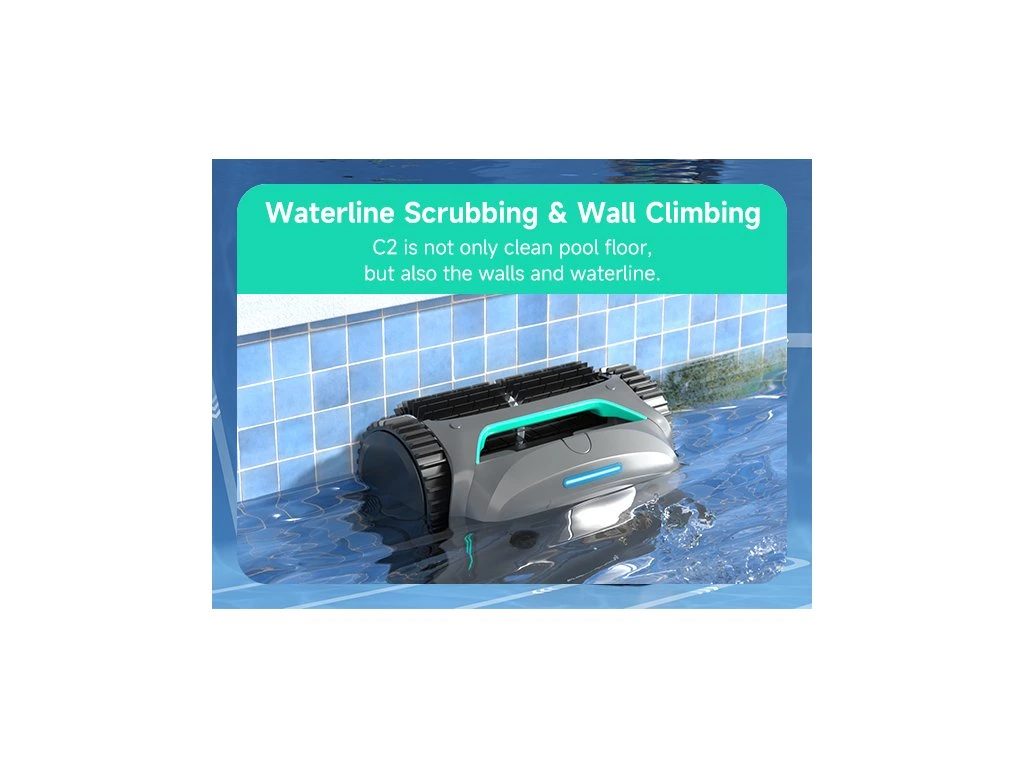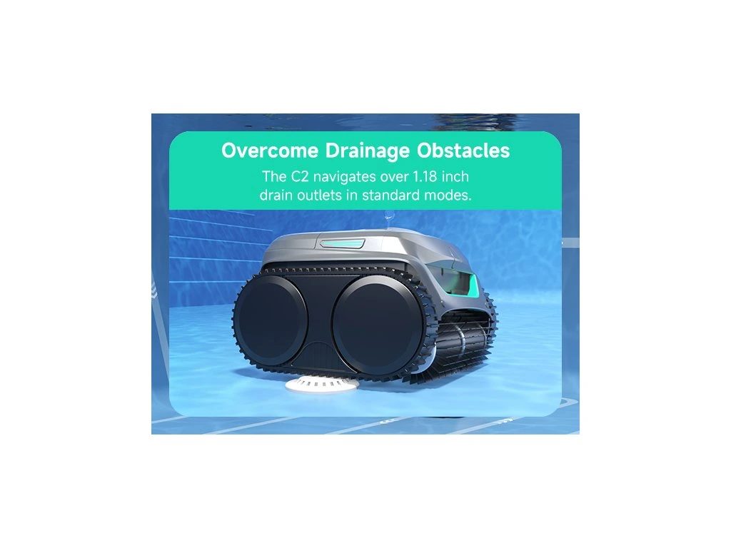 WYBOT C2 je robotický bazénový vysavač pro kompletní údržbu bazénu bez kabelů. Stačí ho vložit do vody, zvolit režim a vysavač se díky chytré navigaci pohybuje systematicky tak, aby pokryl celý bazén bez zbytečných přejezdů. Výkonný systém tří motorů a dvojice kartáčů si poradí s běžnými i odolnějšími nečistotami na dně, stěnách i ve vodní lince.