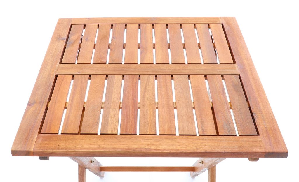 Akáciové dřevo je známé svou odolností vůči povětrnostním vlivům, biologickému znehodnocení i stárnutí, což zaručuje dlouhou životnost sestavy i snadnou údržbu, stačí pravidelné ošetření bezbarvým teakovým olejem.