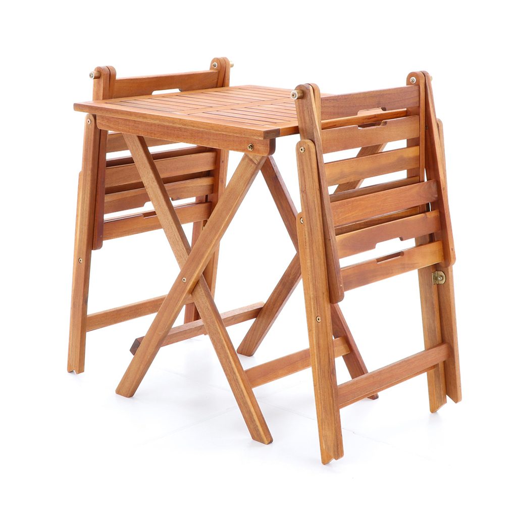 Balkonová sestava Balcony set VeGAS přináší luxusní a praktické řešení pro každého, kdo si chce užít pohodlí a styl na svém balkonu. Tato elegantní sestava pro dvě osoby je vyrobena z vysoce odolné exotické akácie, která vyniká nejen svou pevností, ale i nádhernou plamennou texturou a teplými olivově hnědými až šedohnědými odstíny. Díky kompaktním rozměrům a skládacímu provedení je sestava ideální volbou i pro menší balkony v bytových domech či panelácích.