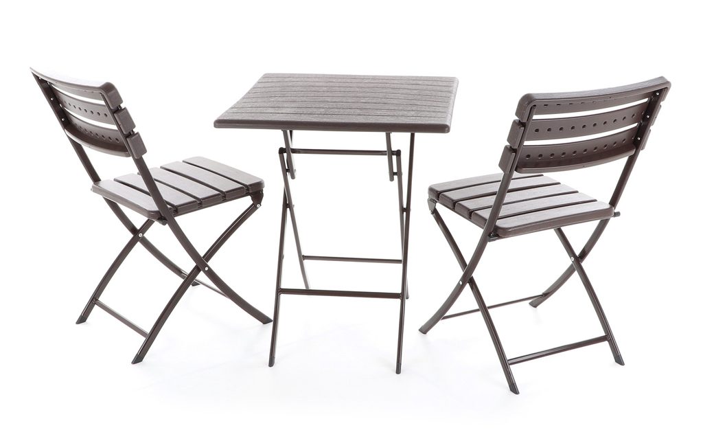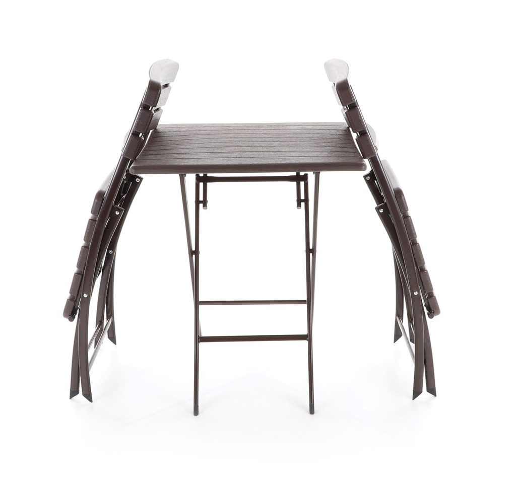 Balkonová sestava Jena VeGA je moderním a praktickým řešením pro každého, kdo hledá stylový a zároveň odolný nábytek na balkon, terasu nebo do zimní zahrady. Sestava zahrnuje dvě skládací židle a stůl, které jsou vyrobeny z kvalitních ocelových profilů s povrchovou úpravou komaxitovou barvou a doplněny deskami z lisovaného plastu v atraktivní imitaci masivního dřeva. Díky UV filtru si materiál dlouhodobě uchovává svůj vzhled i při vystavení přímému slunci.