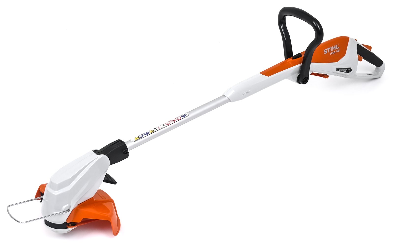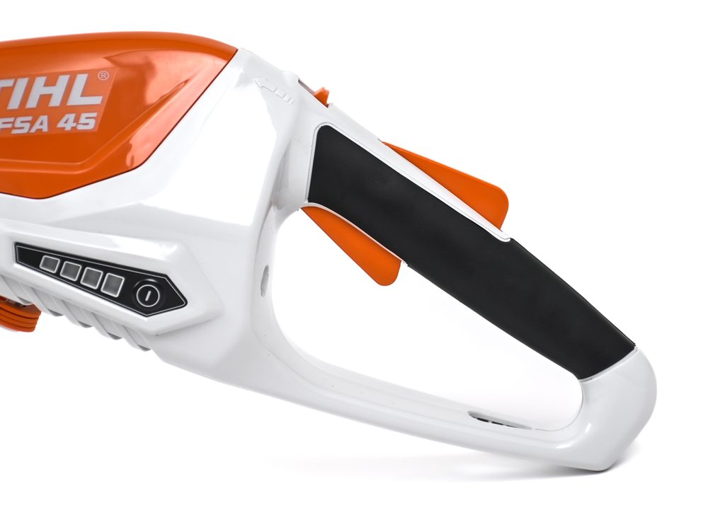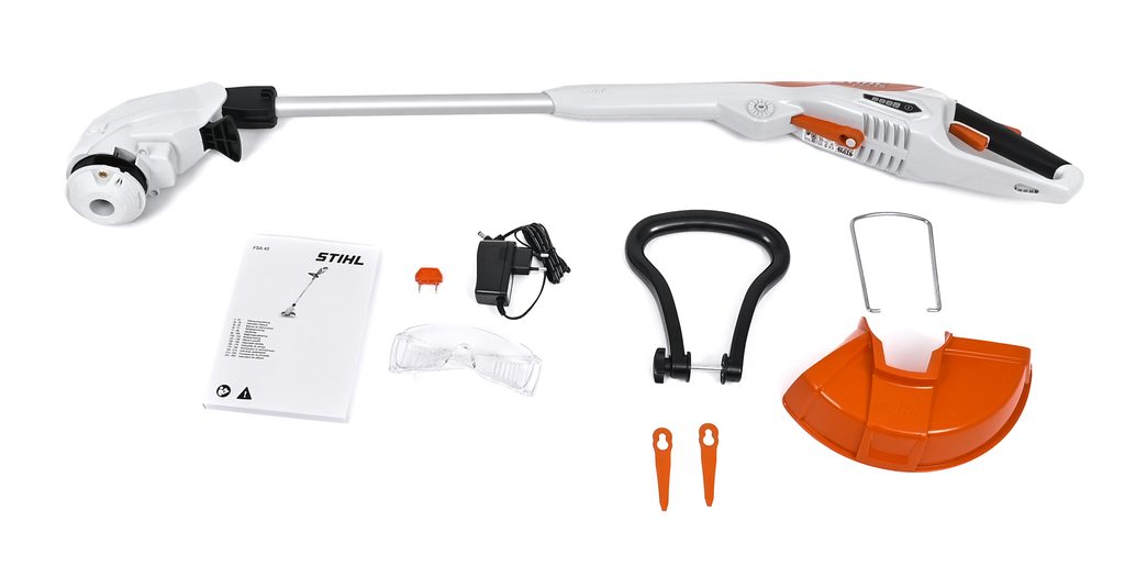 Aku strunová sekačka STIHL FSA 45 tvoří součást řady STIHL Al, je vybavena aktivačním klíčem, který funguje jako bezpečnostní prvek zabraňující nechtěnému spuštění zařízení. Tento klíč je zvláště užitečný při skladování a přepravě, kdy je důležité zabránit náhodnému spuštění zařízení. Nabíjecí kabel umožňuje snadné dobíjení integrovaného 18V Lithium-Iontového akumulátoru z běžné zásuvky, což zajišťuje, že budete mít vždy dostatek energie pro svou práci.