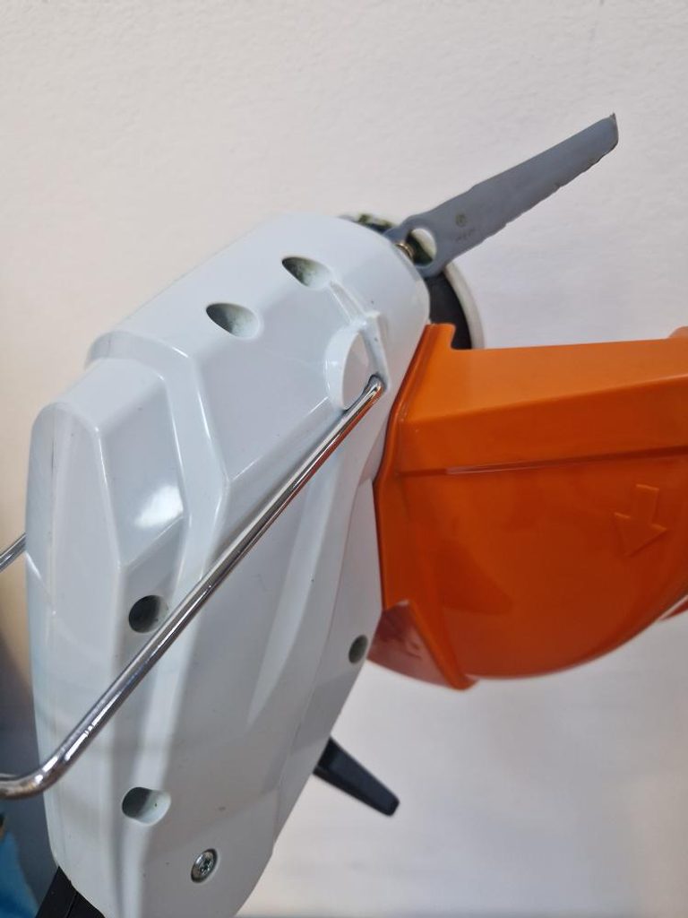 Aku strunová sekačka byla použita k odzkoušení, má drobné oděrky povrchu a viditelné použití žacích nožů, vč. originální balení vč. návodu, stroj je 100% funkční.