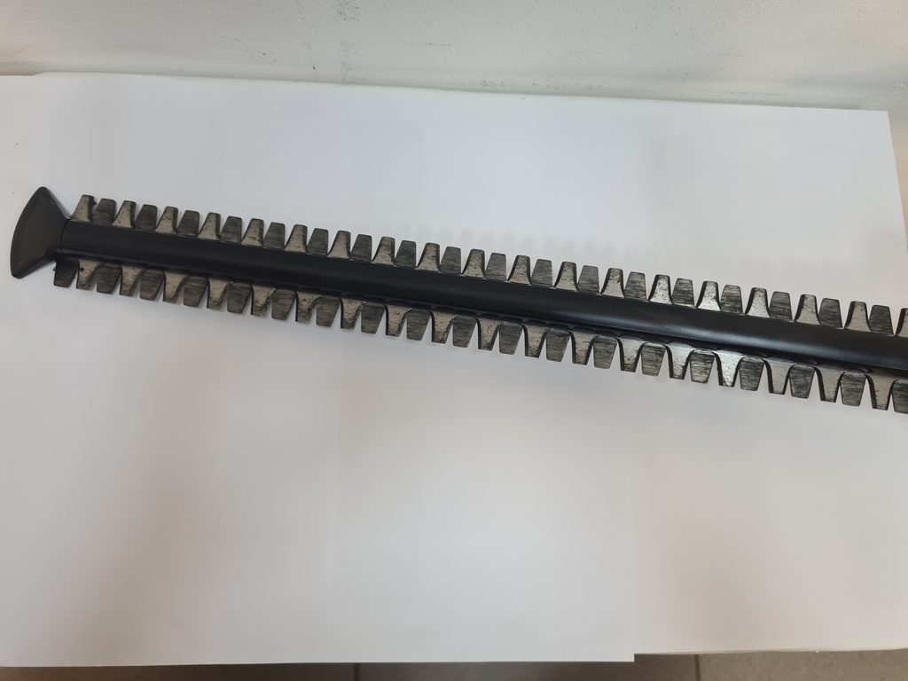 Plotostřih byl použit při odzkoušení, stroj má drobné oděrky od použití, nože jsou poškrábány použitím, originální balení vč. návodu.