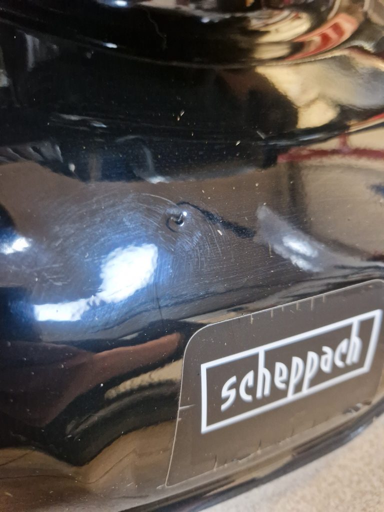 Sekačka Scheppach byla pouze odzkoušena, nemá originální balení, vč. návodu, drobné vady povrchu - oděrky.
