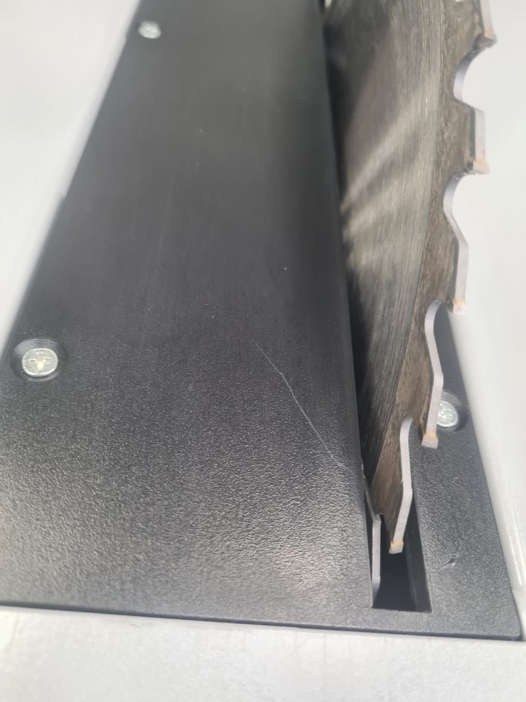 Praktický integrovaný držák materiálu na levé straně pily usnadňuje zpracování delších kusů dřeva či jiných materiálů. Tato funkce zvyšuje stabilitu a zajišťuje přesnější řezání, což ocení zejména profesionálové při práci s většími či delšími díly.