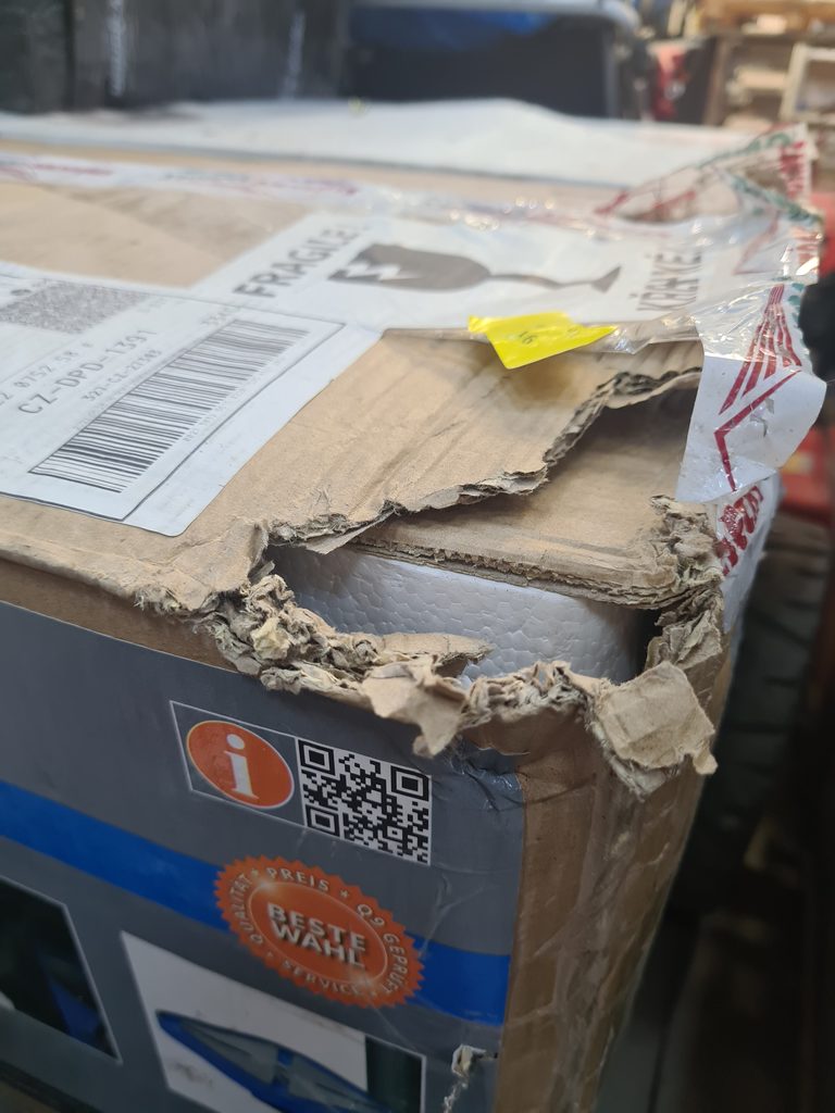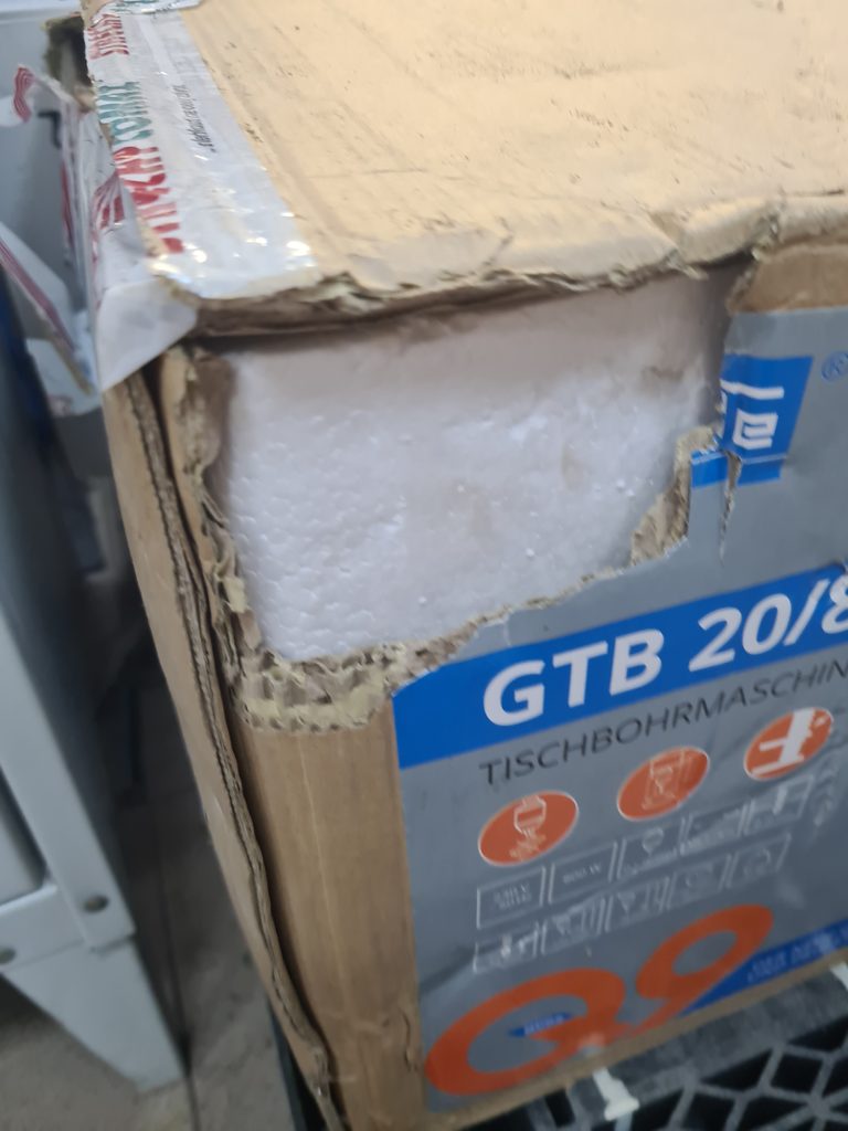 Elektrická stolní vrtačka má poškozený obal, vrtačka má drobné oděrky, funkční nový výrobek, vč. návodu, originálního balení.