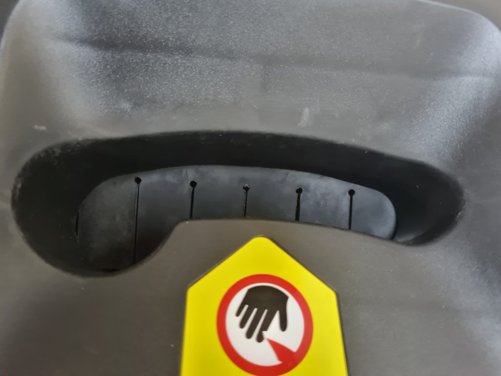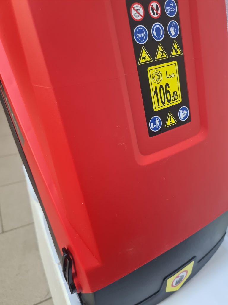 Drtič větví byl jednou použit při odzkoušení, prasklá krytka nohy, nemá vliv na funkčnost, drobné oděrky, stroj je funkční. Originální balení vč. návodu.